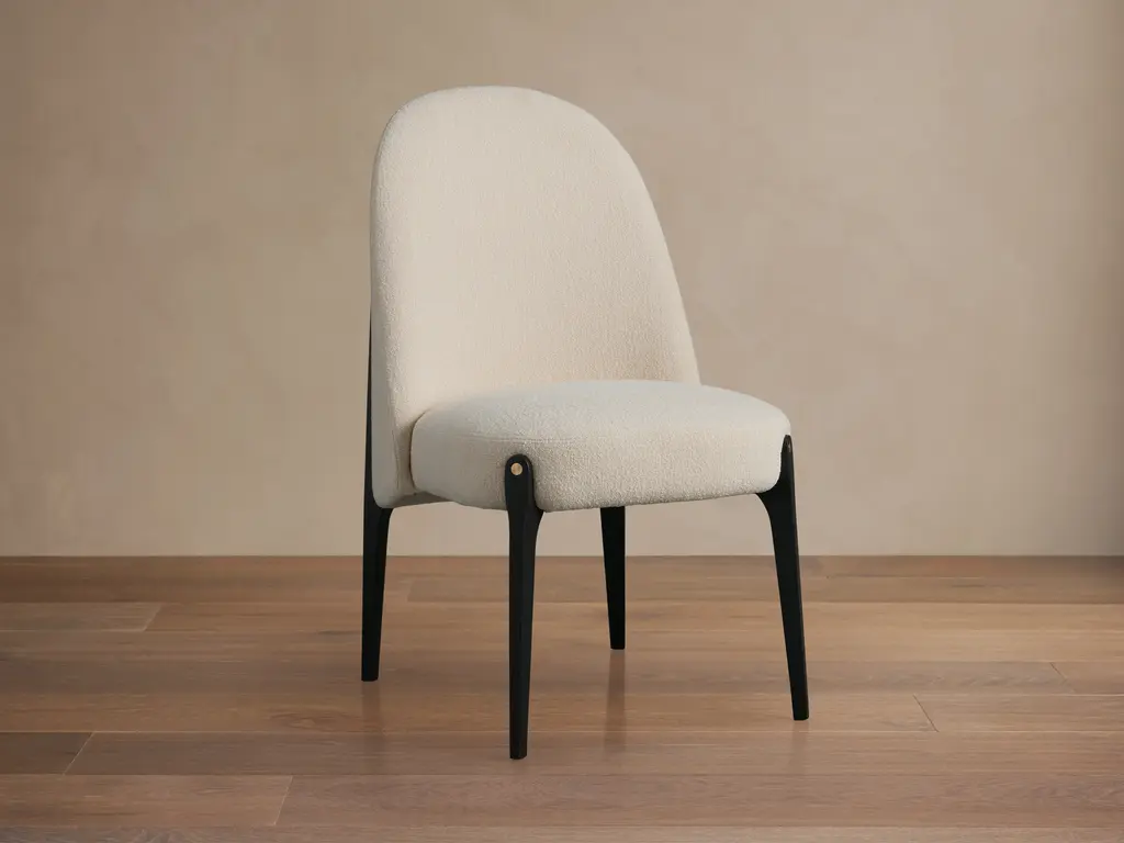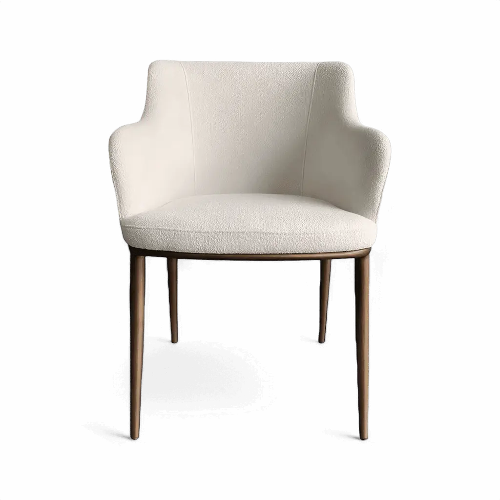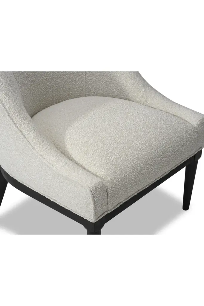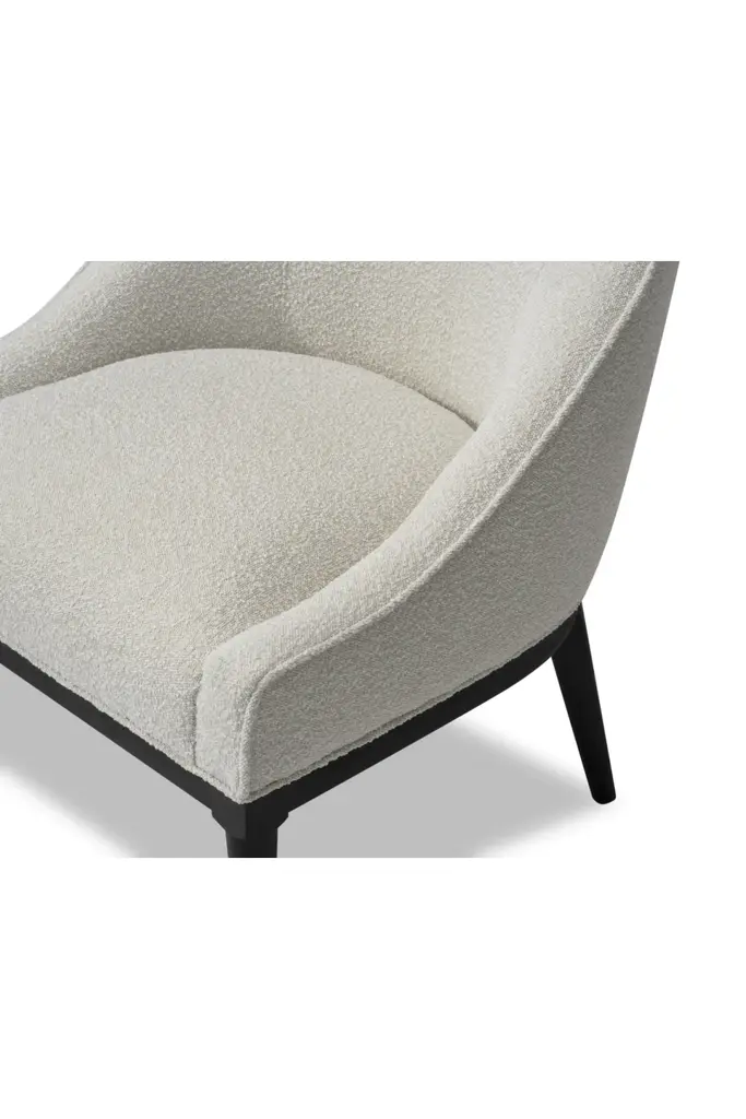 Elevate your living space with the casual elegance of the Vegas Occasional Chair. A beautiful, rounded backrest melts into sloped armrests, offering an inviting seat that will hold you in comfort. Though the upholstery is definitely more, the style is less – offering a minimalist take on a classic. The elegant contoured design will sit unassuming yet sophisticated in any living room. The Vegas chair is available in selected stunning shades such as Boucle Sand and Sherpa Gray. W28 x D31 x H35 in | Weight 29lbs W 71 x D79 x H90 cm | Weight 13kgs Seat Dimension: W22 x D23 x H20 in | W 57 x D 58 x H 50 cm Arm Height: H19 in | H47 cm Upholstery | Boucle Fabric Legs | Wood