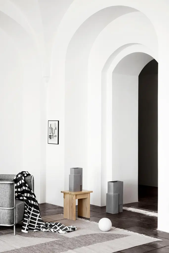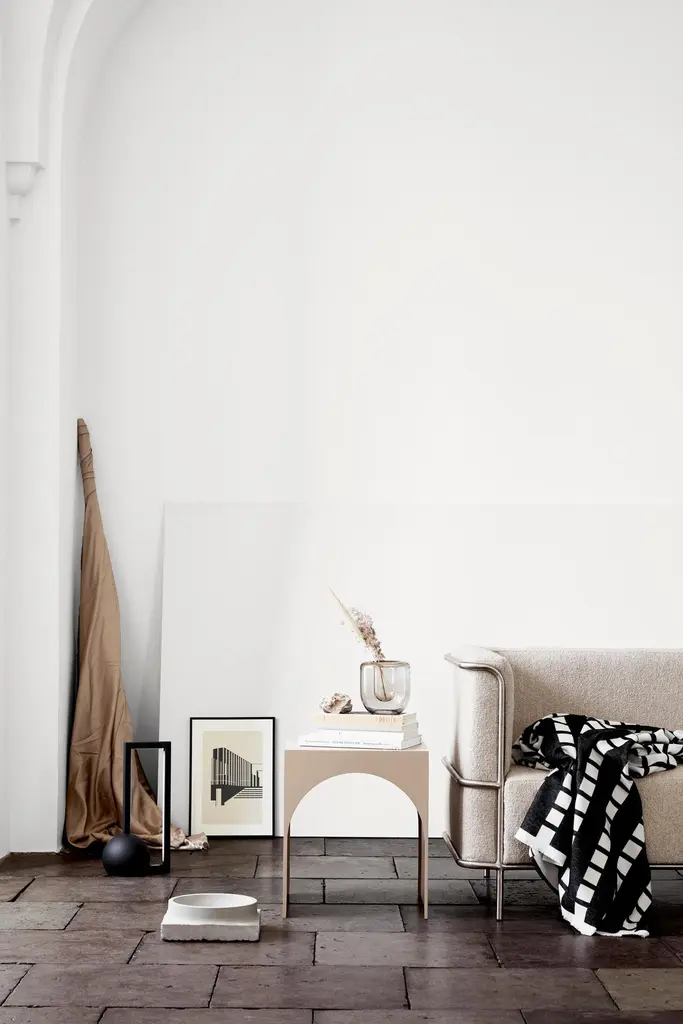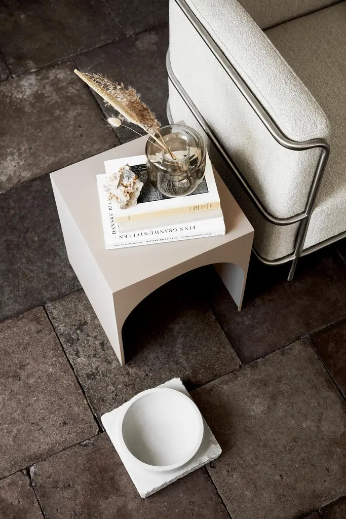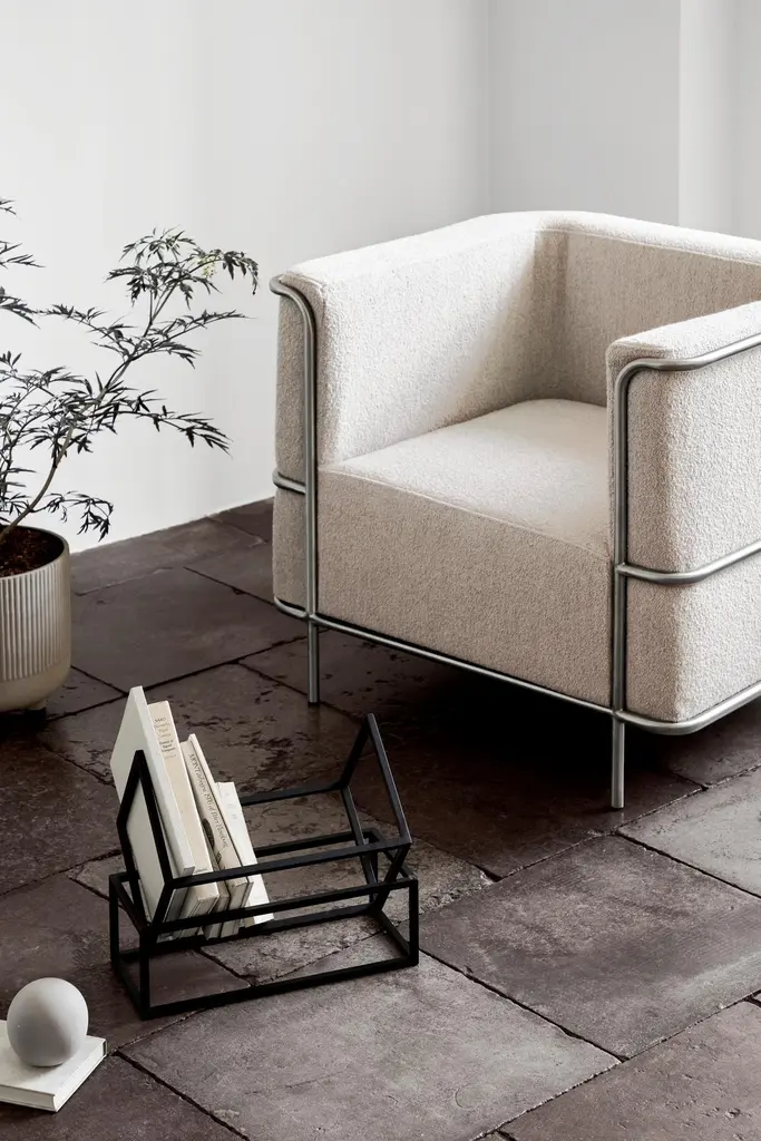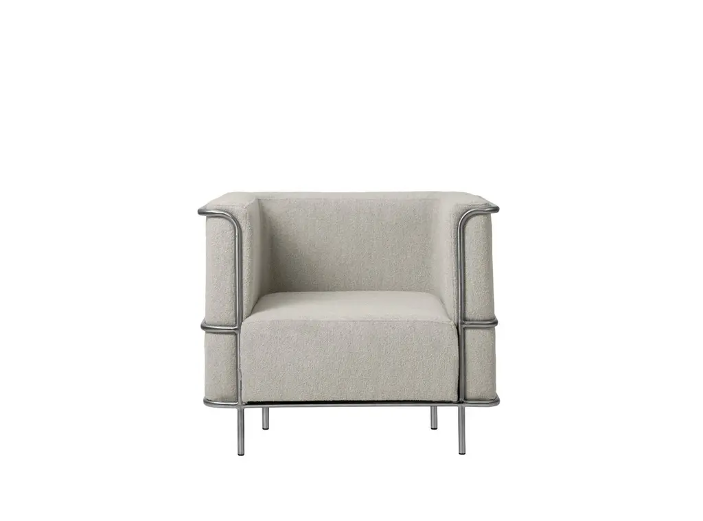 Modernist lounge chair by Kristina Dam StudioMaterials: Beige BoucleDimensions: 87 x 77 x 70 cmKristina Dam graduated from The Royal Danish School of Fine Arts, Architecture and Design in Copenhagen. In her designs you will find her great love for architecture and minimalistic graphic lines.Everything originates from Kristina’s passion for design and art. She will find her inspiration when travelling, browsing Pinterest, blogs, Instagram and talking to people.Her first product – a series of limited edition illustrations – quickly became a favorite in Scandinavian design stores, magazines and homes. Today Kristina Dam Studio has developed into a design powerhouse of furniture and accessories. Two collections are launched every year and we collaborate with upcoming as well as established designers.Kristina Dam Studio was founded by graphic designer and architect Kristina Dam in 2012. The initial design idea for the studio was to create industrial designs that had a more art-based approach. The idea of making art and interior design merge, both in furniture, accessories, art prints and illustrationsWe call our design approach for "Sculptural Minimalism". Designs by Kristina Dam Studio are graphic and architectural with a high level of details and excellent craftsmanship. Furniture from Kristina Dam Studio are mostly made from natural materials. We believe that mastering the monochromatic palette enable us to create timeless and enduring designs. Distinct and beautiful - simplicity with an attitude. Honest materialsWe only use honest, genuine, natural and carefully selected materials – and we treat them with respect. The majority of our collection is produced within the European Union. Our love for genuine materials is a part of our Nordic design inheritance – a legacy we take very seriously. Sculptural MinimalismThe major lines in the designs are graphic and architectural. A high level of details and pristine craftsmanship are key are well. Kristina Dam Studio furniture pieces are assembled with spigot joints and dowels and produced in natural materials. You’ll find the same love for details in all of your designs.A sculptural approach to designKristina Dam Studio aim to design products with at sculptural approach. Designs that have character, style and a bold expression that will add something extra to your interior. With each collection at least one new sculpture is launched. That sculptural quality and approach is visible in all our designs.