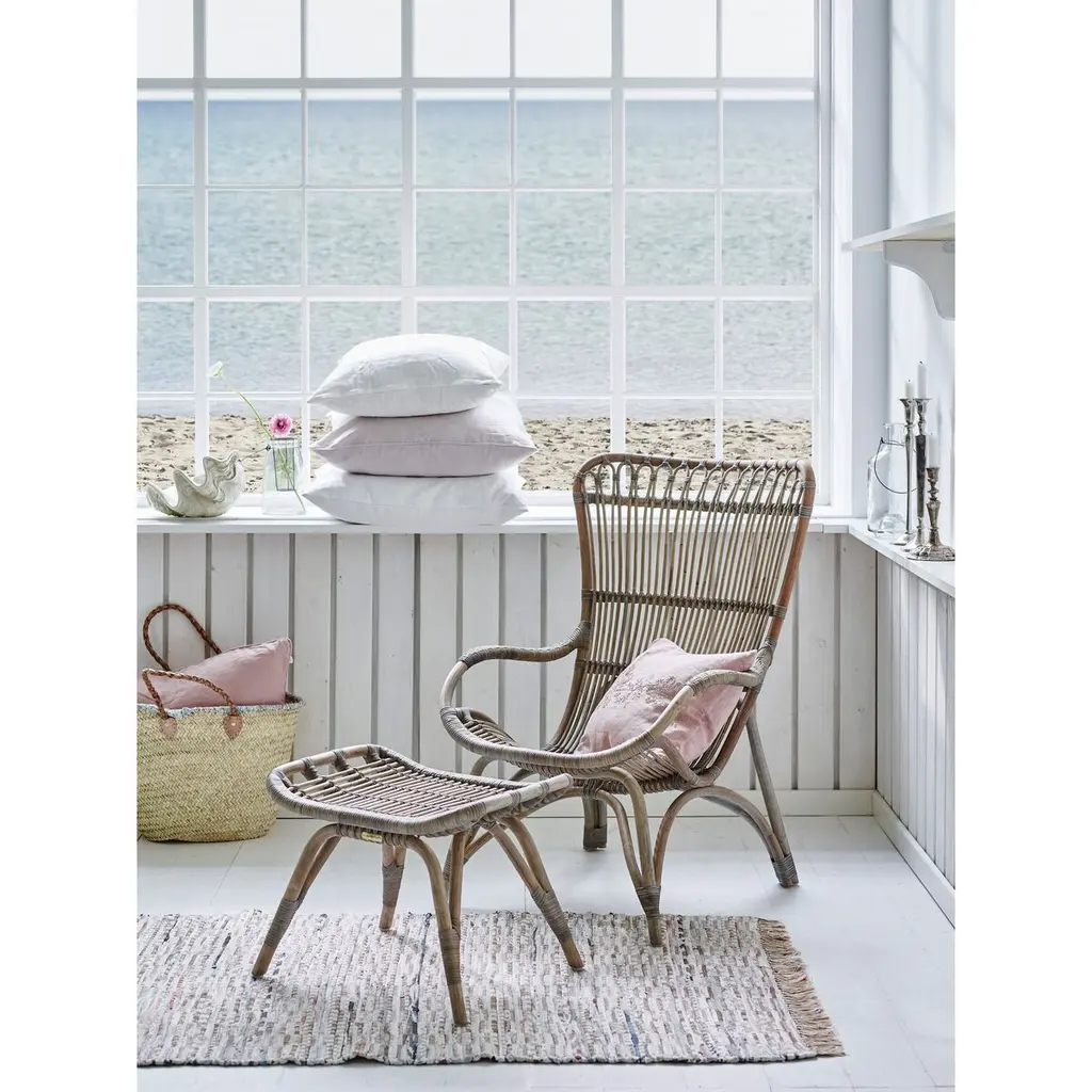Sit back and relax in this lounge chair, inspired by designs of the 1950s and '60s. Made of durable rattan with woven reinforcements and a curvy silhouette, this chair is at once sturdy and stylish. Suitable for indoor use only.