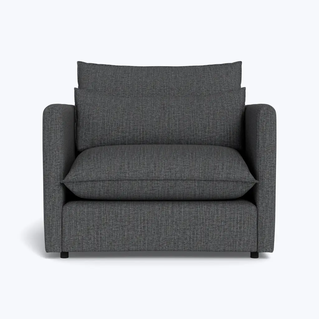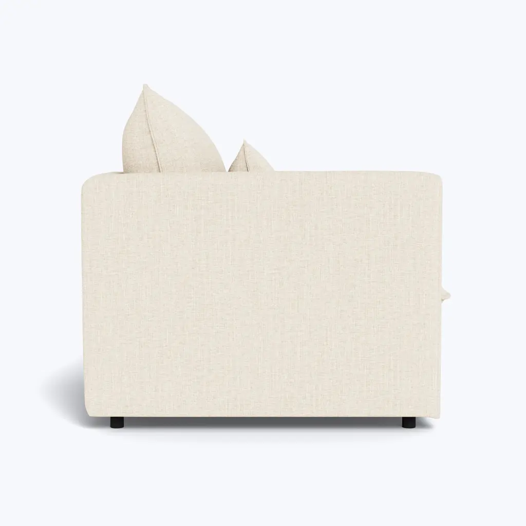 The Montauk Lounge Chair, exclusively from ABC Carpet & Home, offers the perfect balance of style, comfort, and versatility. Whether used as a standalone piece in a cozy reading nook or paired with other Montauk pieces to complete your living space, this lounge chair brings a refined yet relaxed vibe to any room.Crafted with a sustainably sourced Goodwood frame, the Montauk Lounge Chair emphasizes eco-conscious craftsmanship and long-lasting durability. Its cushion core, made from eco-friendly foam partially derived from sustainable, plant-based materials, is wrapped in a plush blend of feather and down, creating a cloud-like seating experience. The high back provides ample support, making it the perfect place to unwind and relax in luxurious comfort.The Montauk Lounge Chair’s modern floating base adds an airy, contemporary feel to any room, while elegant flange detailing enhances its sophisticated design. Keeping the chair looking fresh is effortless—simply fluff and rotate the cushions to maintain a guest-ready appearance at all times.With over 80+ custom fabric options—including cottons, linens, blends, and performance fabrics—you can personalize the Montauk Lounge Chair to perfectly complement your home. Choose from in-stock fabrics for faster availability, or explore custom options to create a chair that reflects your unique style. If you need assistance, our design specialists are available in-store to help you craft the perfect look for your space.Handmade in the USA, the Montauk Lounge Chair offers premium craftsmanship and timeless appeal. Pair it with other pieces from the Montauk collection—such as the modular sectional, armless chairs, ottoman, or sleeper—to create a cohesive and inviting living area tailored to your style and needs. Whether it's used as a statement piece or part of a larger seating arrangement, the Montauk Lounge Chair brings an air of effortless luxury to any home.