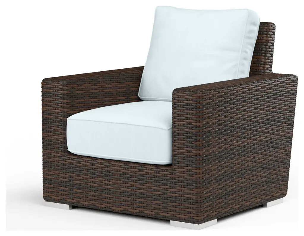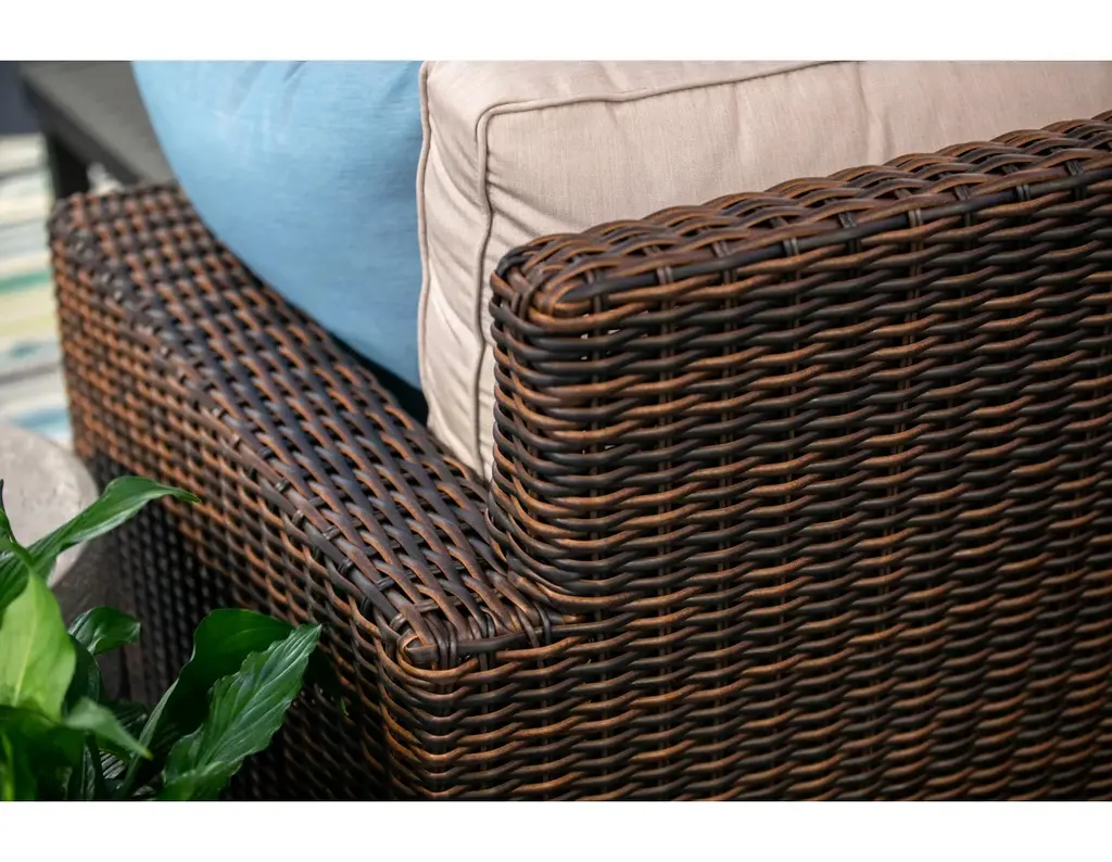 Expertly wrapped in a rich Cognac multi-colored weave, the Montecito Club Chair mimics natural materials with low maintenance in durable virgin resin wicker. Absolute comfort is provided with its generously sized frame and advanced seating support.Fully welded powder-coated aluminum frameWrapped in virgin PE Resin Wicker in CognacSunset West Progressive Springing System TechnologyWeather resistant, high-resiliency foam cushionsStocked in Premium Sunbrella fabric in Canvas FlaxNon-marking plastic glidesCommercial Quality ConstructionCustom Cushions available in approx. 4 weeks.Montecito is part of the Cognac color story, and coordinates well with Monterey and pieces from the Bazaar.
