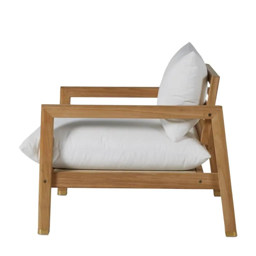 The Monterey Lounge is constructed from natural teak, a hard durable wood that is exceptionally resistant to weather and natural elements. Summer Classics teak furniture features mortise and tenon construction to assure years of durable, worry-free enjoyment. The included ultra-plush cushions are specifically designed for outdoors to withstand fading and natural elements, and to guarantee high-quality performance. Natural Teak finish.