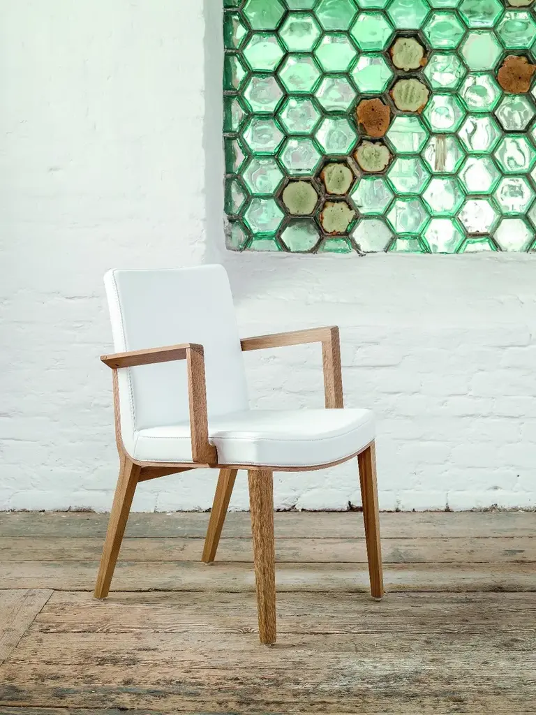 MORITZ - Luxury. Manually ground oak wood, upholstered by fine natural leather, precise stitching and long-term testing of ergonomics ranks the entire MORITZ set among premium TON portfolio products. A very comfortable set of chair, arm-chair and lounge chair meet strict requirements for luxury hotel premises. You will appreciate to spend long family reunions sitting on them at the dinner table at home.