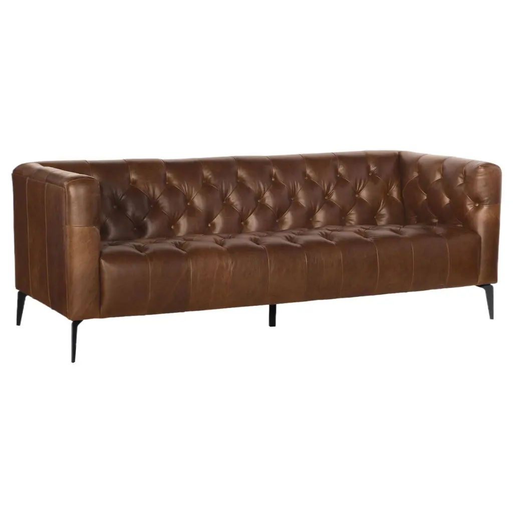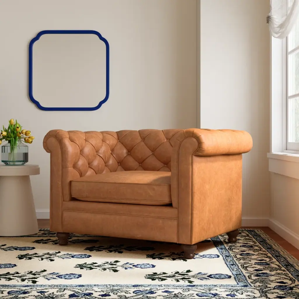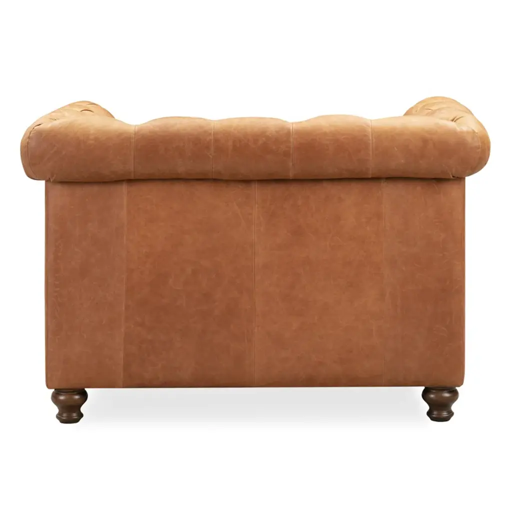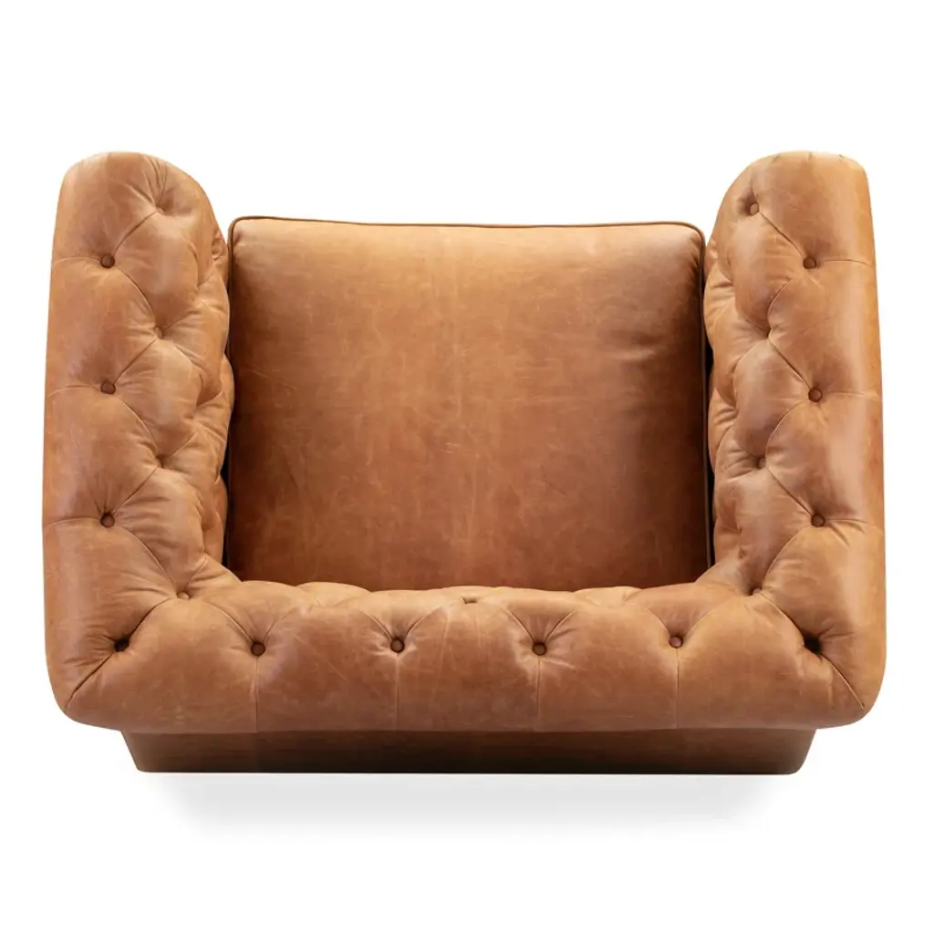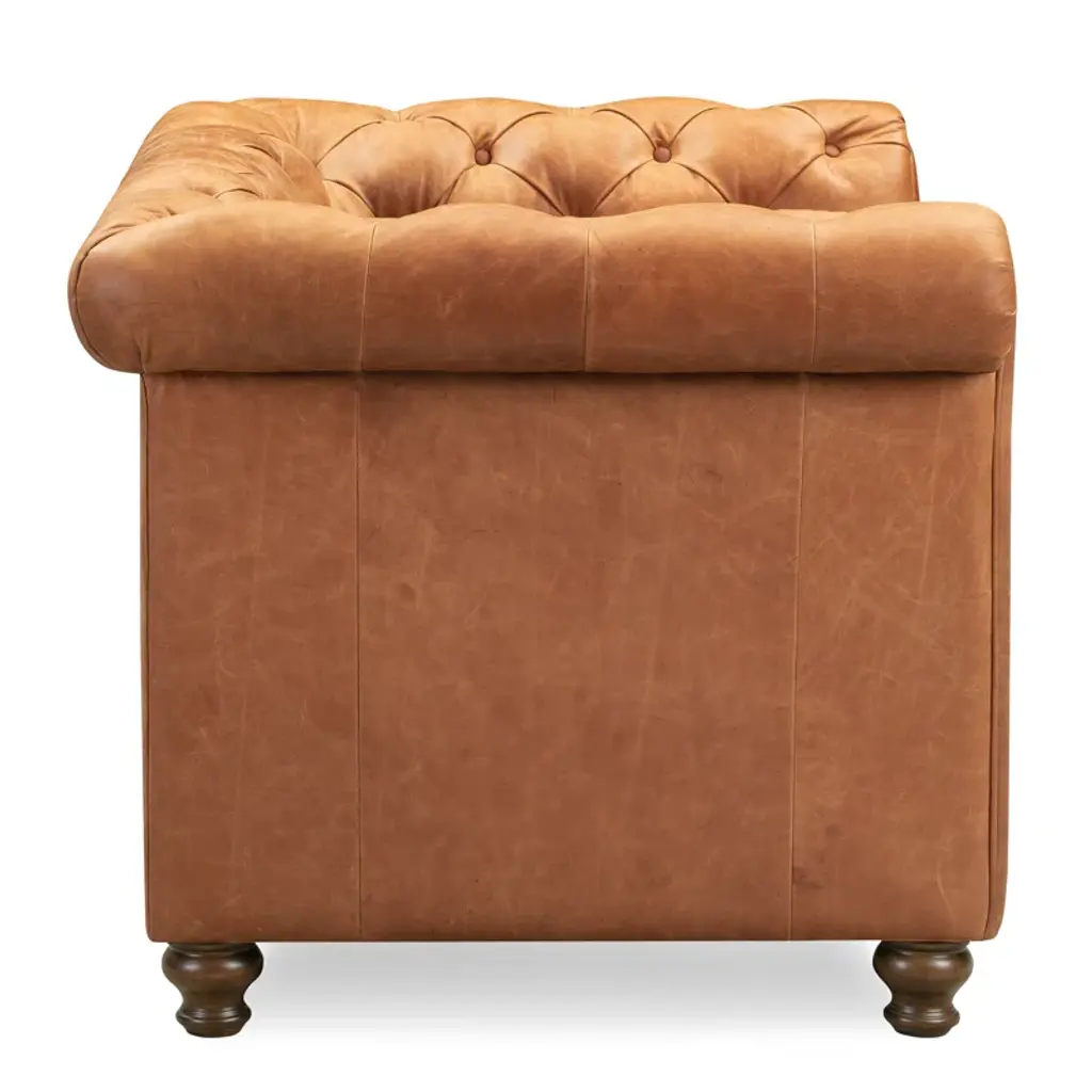 Bring elevated, polished allure to your living room or den with the avian lounge chair. Crafted in the Chesterfield tradition, our chair features elegant rolled arms and diamond button tufting along with the seat back and sides. Its dyed Italian-tanned leather upholstery is available in two options. Eight-way hand-tied seat support is topped by a high-density foam cushion with feather down for sublime softness. Its kiln-dried wood frame is corner-blocked for superior durability, and its beveled wood legs in espresso finish convey enduring sophistication.