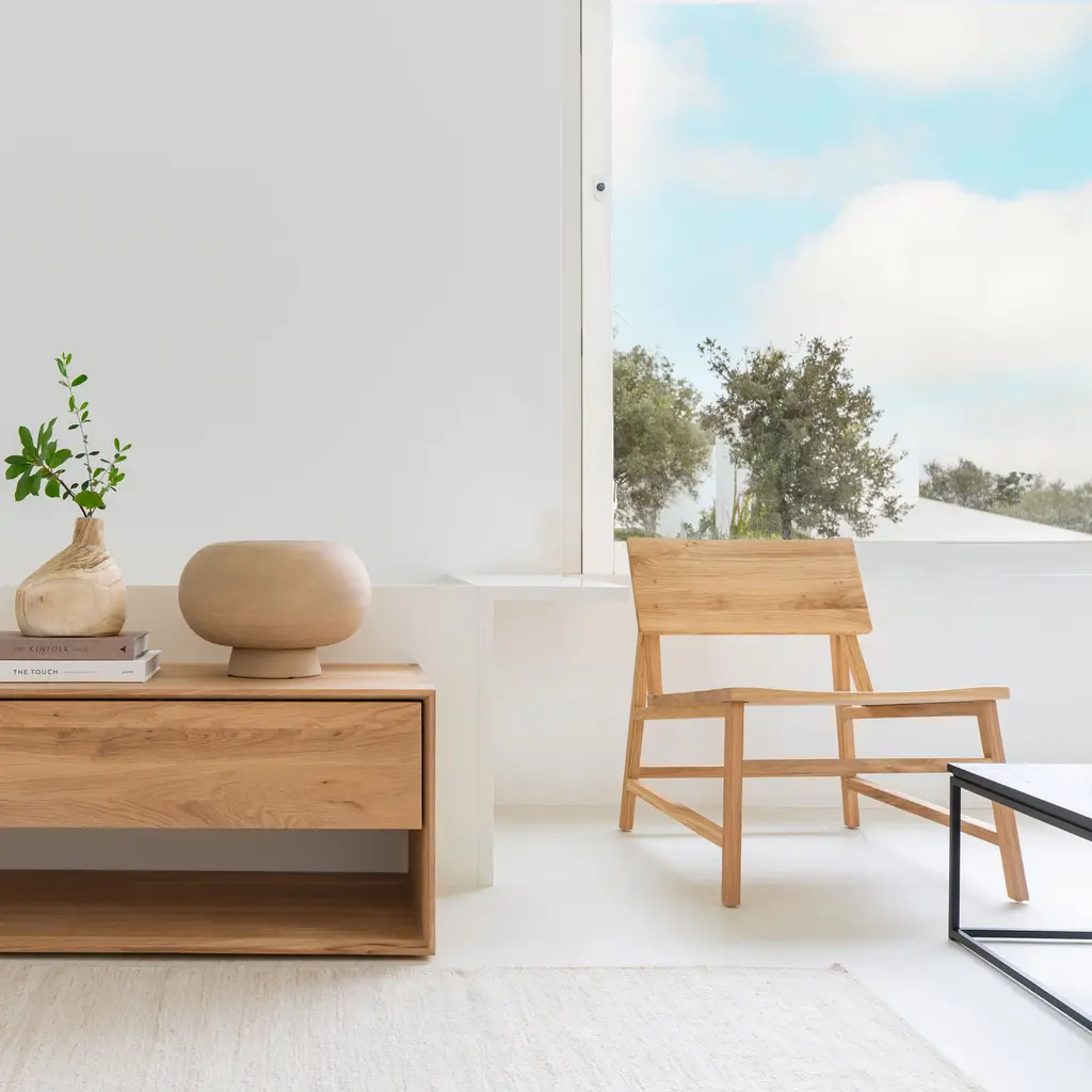 Minimalist design, solid wood and comfort all come together in the Ethnicraft N2 Lounge Chair. Multidisciplinary designer Nathan Yong explores the poetry of objects’ essence throughout his work, and this approach to design is especially evident in the Ethnicraft N-chair collection. The N2 lounge chair invites you to relax and recharge your batteries with a wide, subtly curved seat and large backrest. Crafted from solid oak to bring you joy for many years to come, the N2 lounge chair also comes with a hardwax oil finish that protects the wood but doesn’t cover its distinctive textures and marks. A perfect addition to any living room and lounge area, this angular chair complements any home decor and color palette.