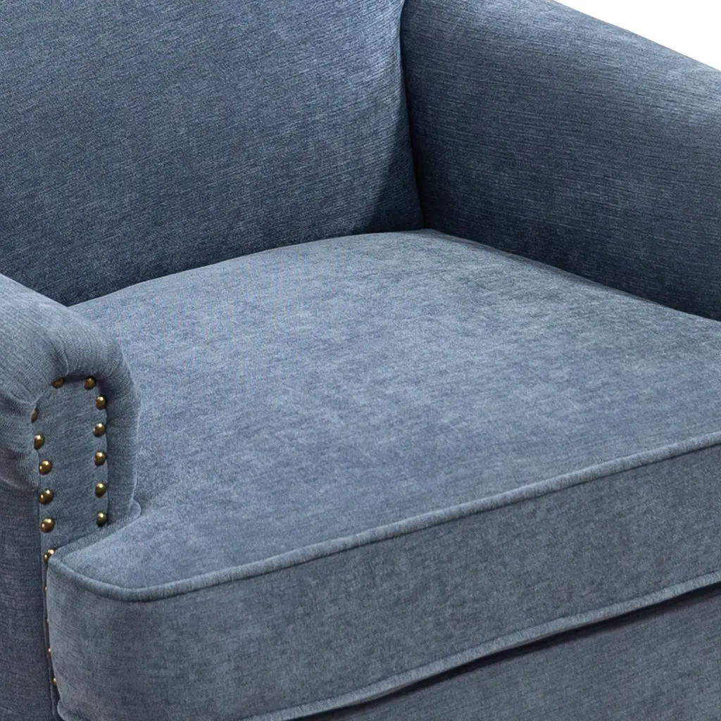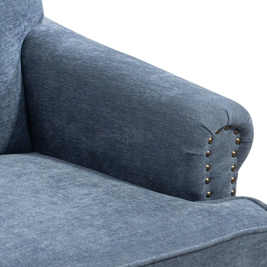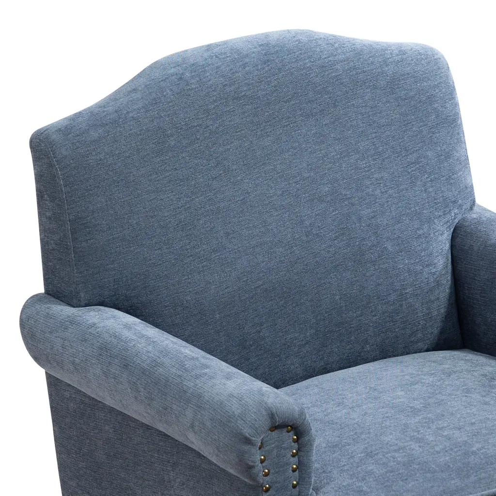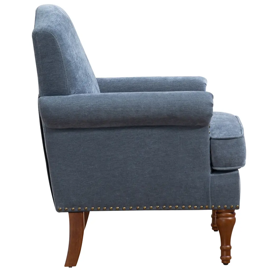 This accent armchair has a solid wooden frame structure. With wooden legs, the entire chair has super sturdiness and durability. It can hold up to 300 pounds.; Designed with your comfort in mind,Made of high quality polyester fabric, this upholstered chair gives you a better seating experience. The backrest and seat cushion filled with high-density sponge provide a high level of comfort and relaxation. Besides, high-elastic springs in the seat cushion offer extra support, comfortable seats that are avoiding collapse after long-time use.; The armrests and backrest, with ergonomic shape, make you feel relaxed while leaning against this chair, helping you relieve spine & neck pressure.; Simple yet elegant design, with nailhead trim and retro wooden legs, adds a touch of charm to your home decoration. You can put this chair in your living room, bedroom or office.; This living room chair comes with all hardware & necessary tools, so you can easily assemble them.