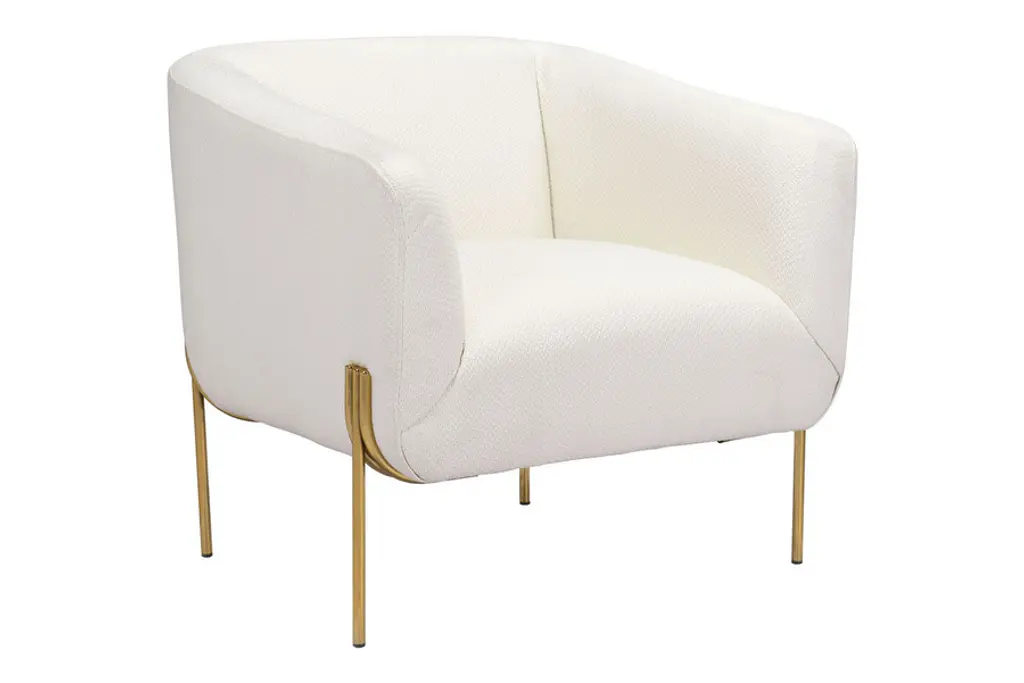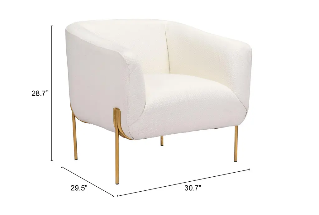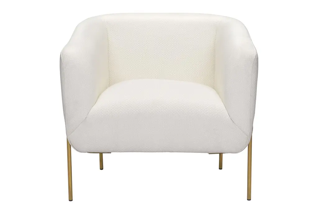 This Nara Ivory Accent Chair is a stunning addition to any contemporary living room or bedroom with its curved, track arms, foam cushions, tight back, and arms. Made with durable polyester material, this indoor club chair is perfect for relaxing and unwinding after a long day.