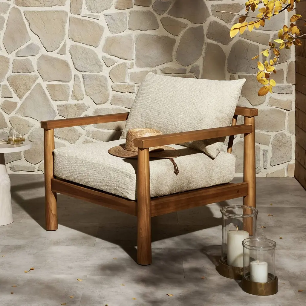 Natalia Outdoor Teak Lounge Chair, Hayes Cream