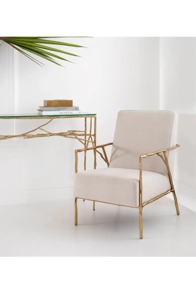 Add a sense of statement appeal to your living space with the Antico Natural Accent Armchair by Eichholtz. Featuring a superb branch-like frame with a gold finish and a seat in Panama natural upholstery, this brass branch side chair is perfect as a part of your living room seating arrangement or as an accent piece in your bedroom.