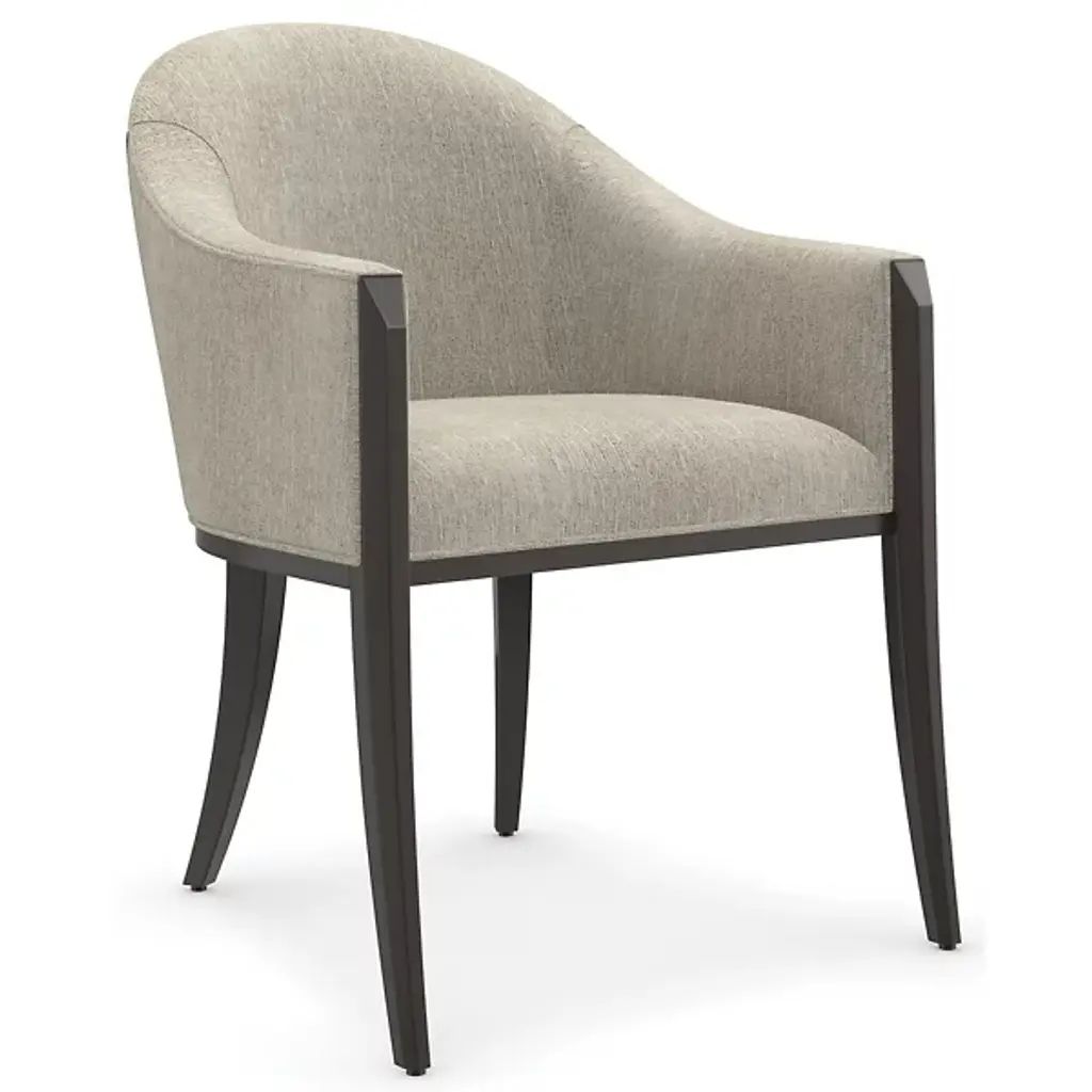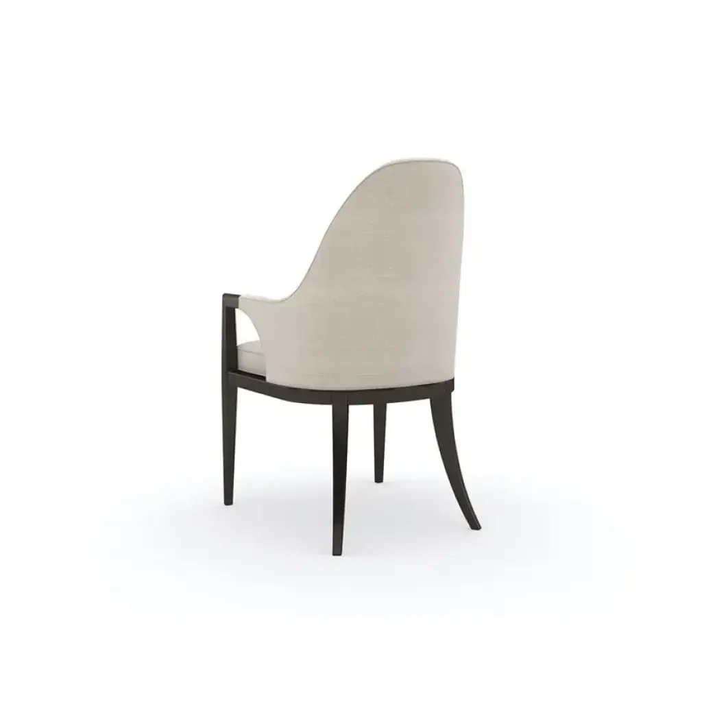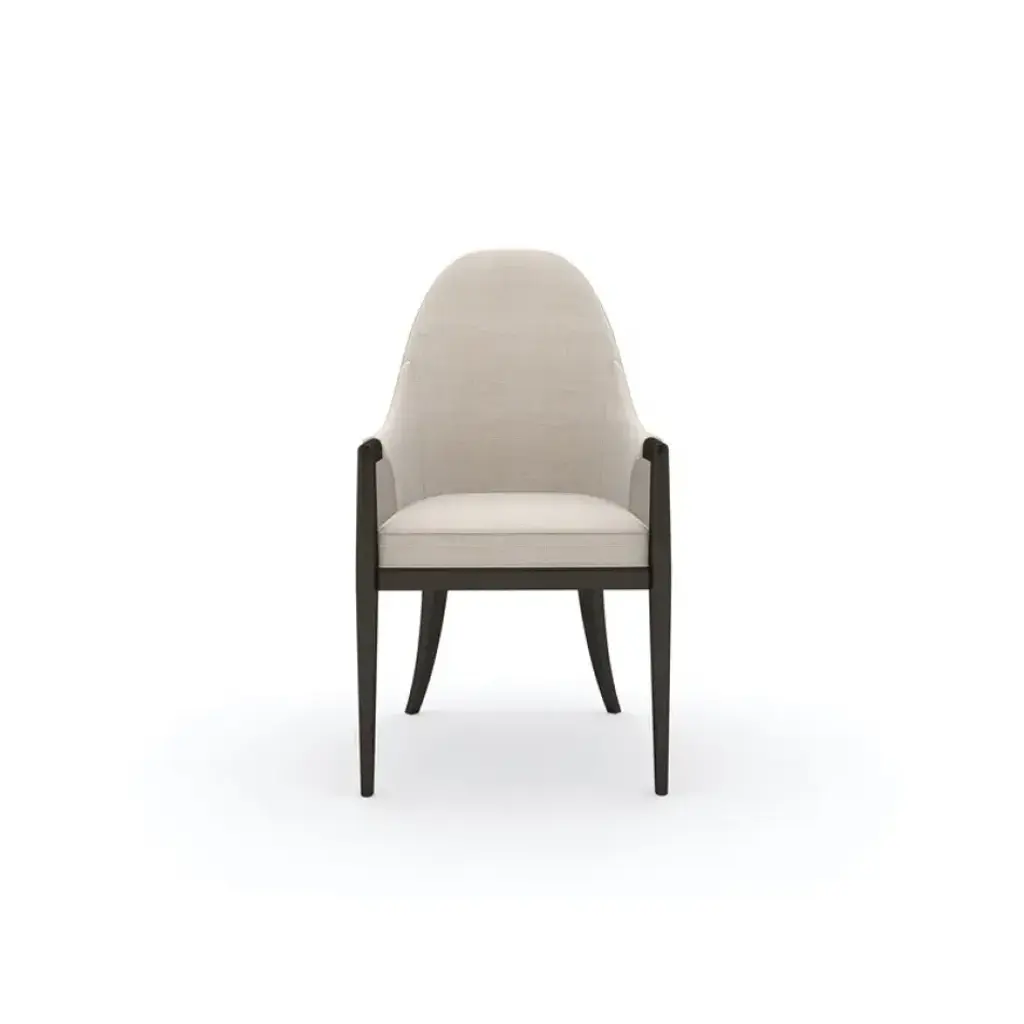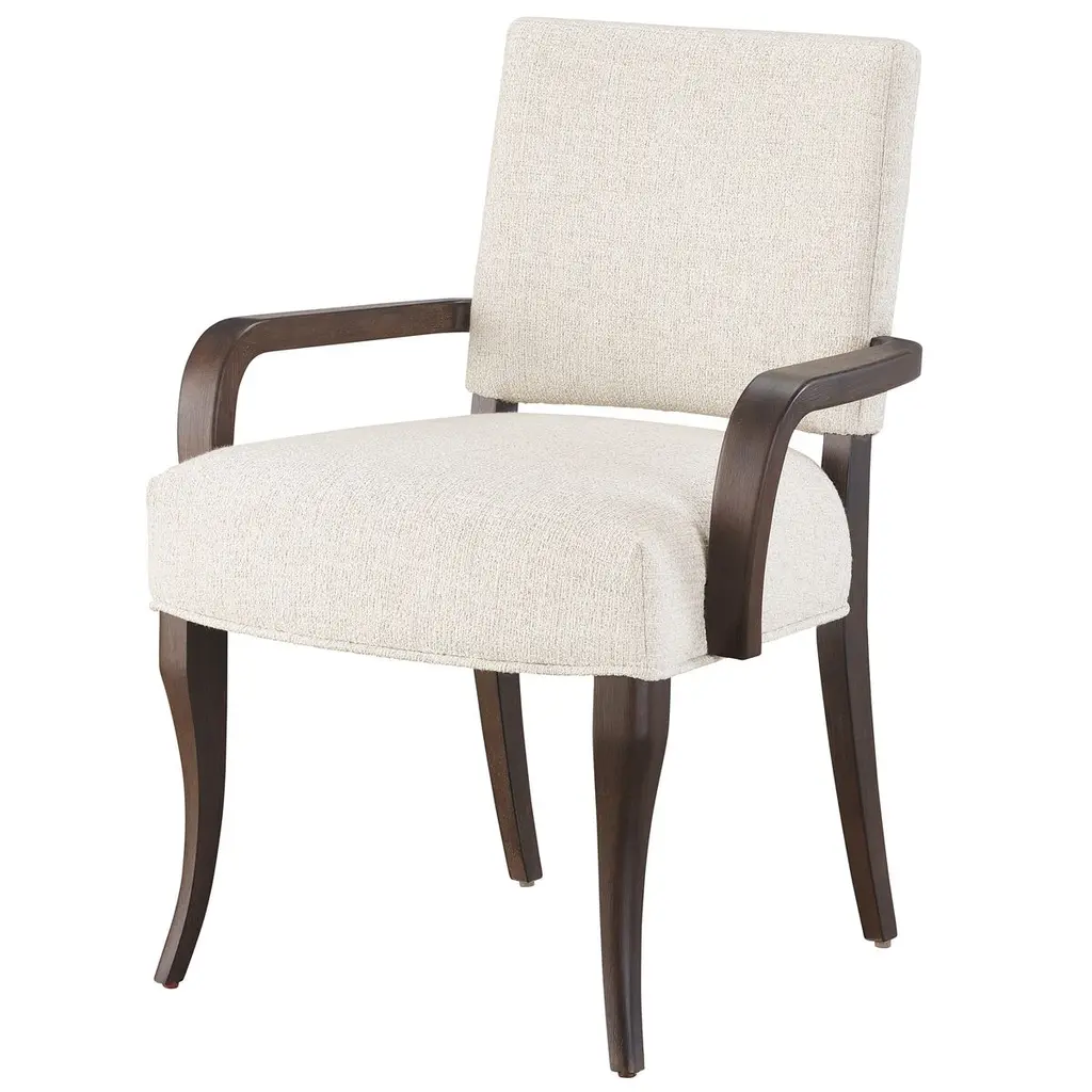 With a comforting curve along the back and arms, this modern arm chair introduces a style that’s unpretentious, yet elegant and refined. Accented by welt, its simple silhouette is beautifully balanced on an exposed wood frame and tapered legs in Dark Chocolate. Expertly tailored in a beige basketweave performance fabric that’s durable and easy to clean. Pair with a desk to elevate working from home.
