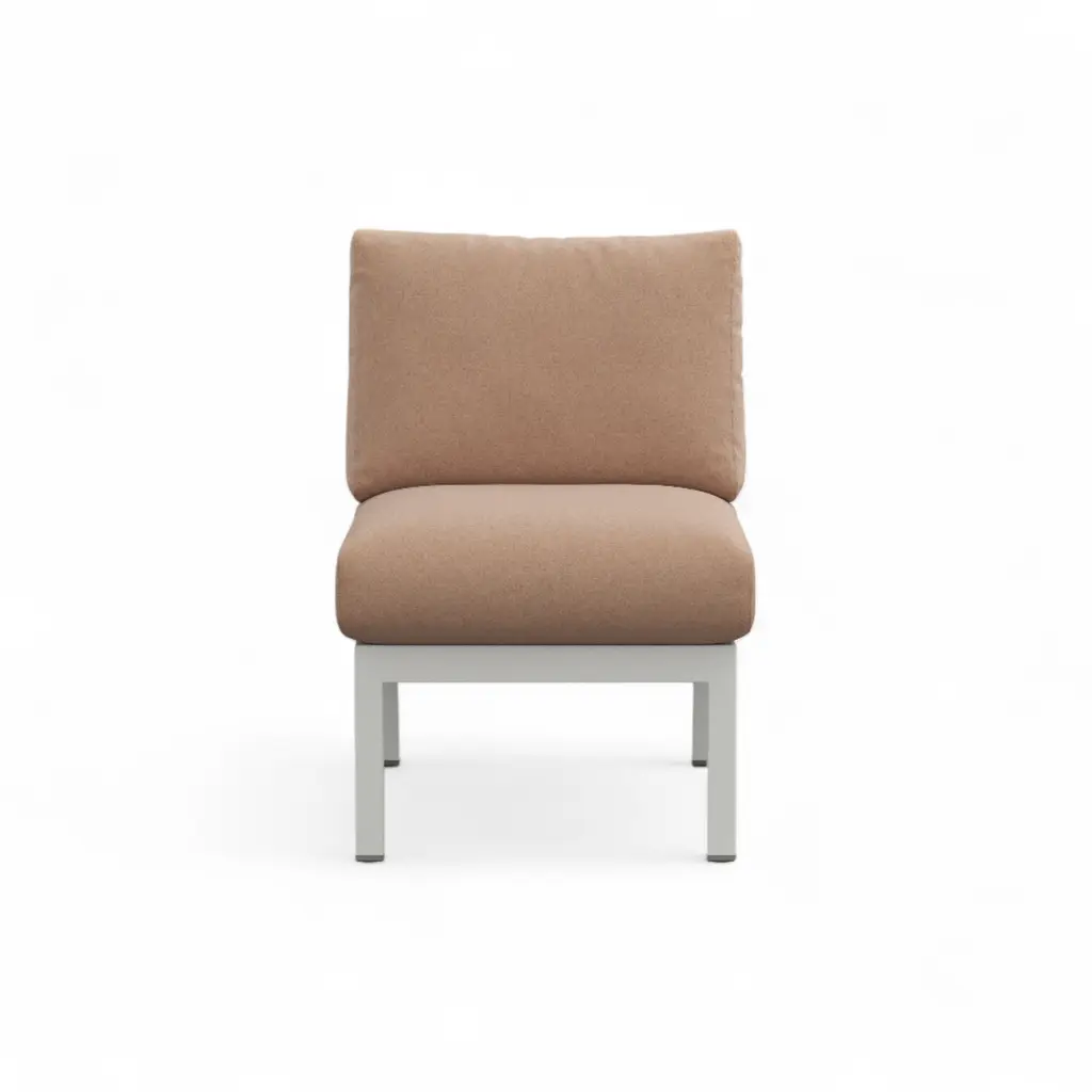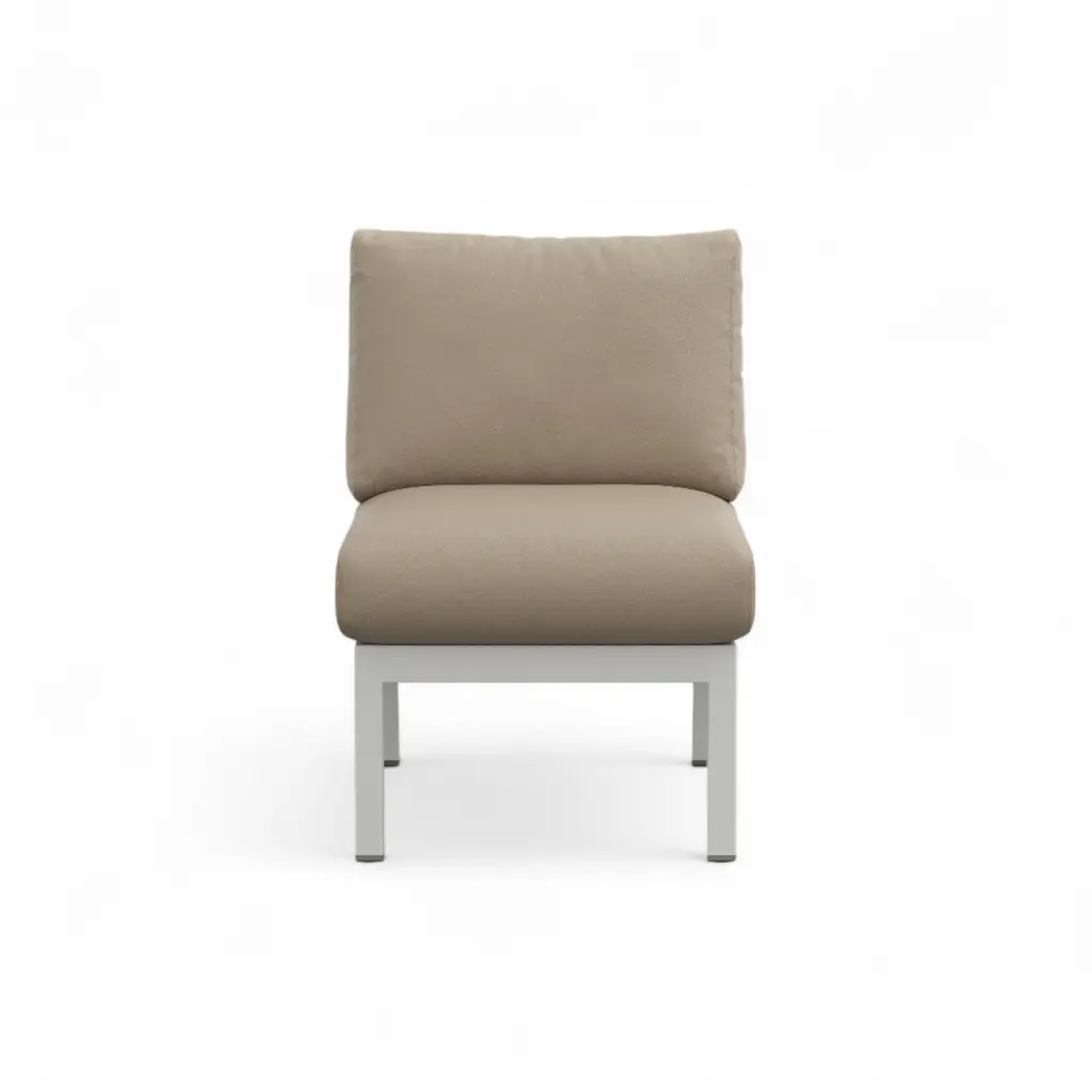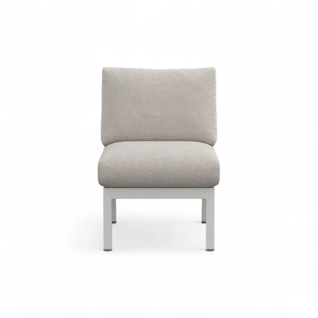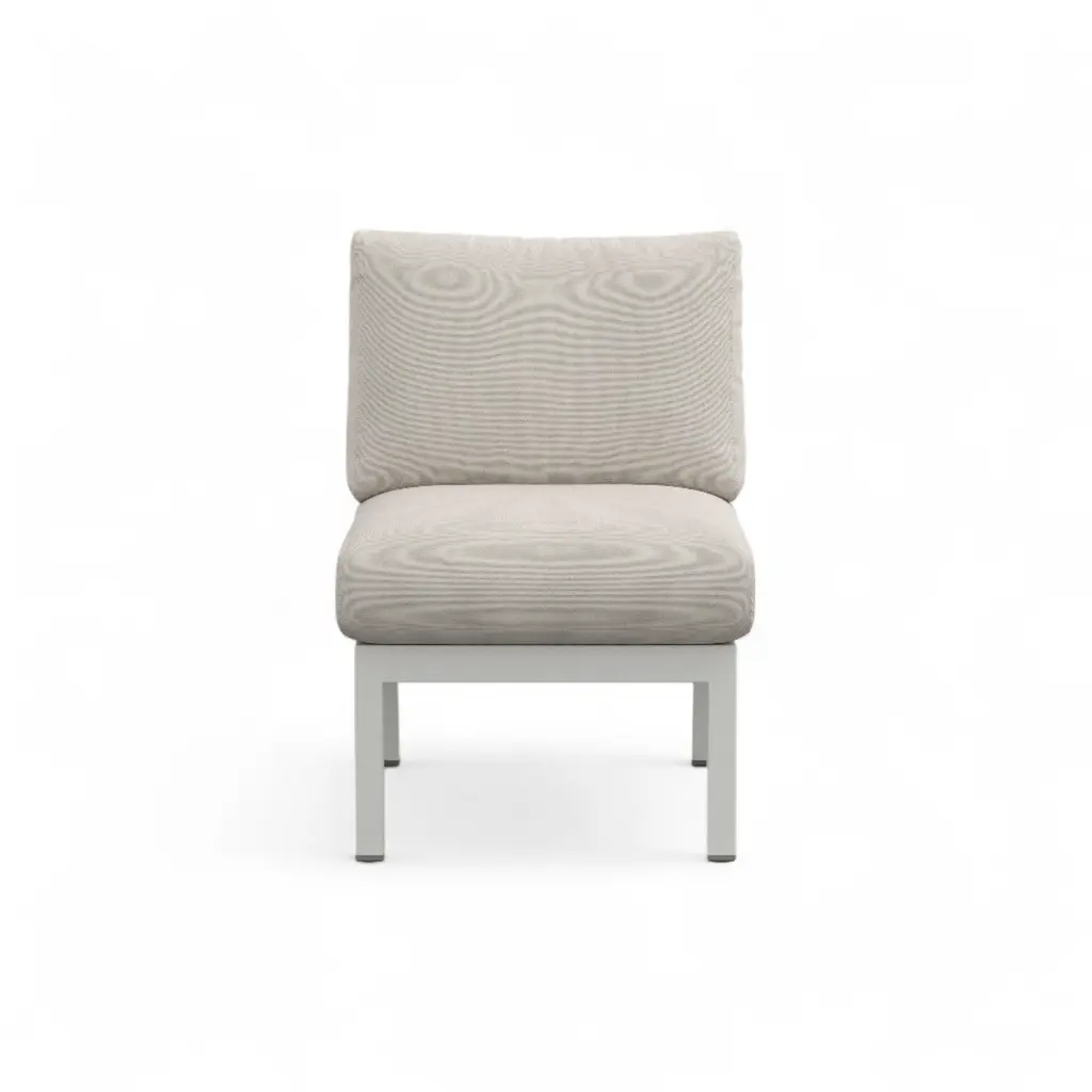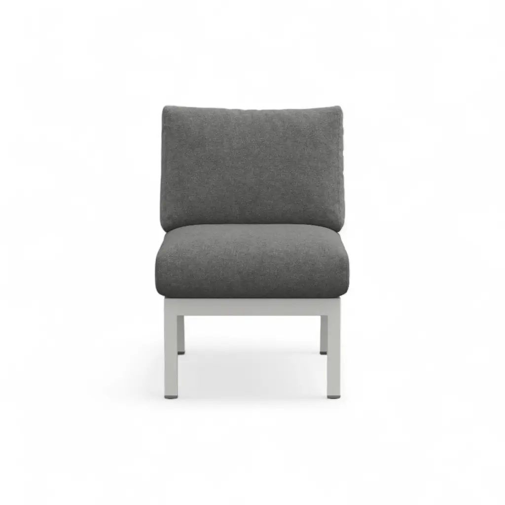 Does the white-grey coating chip easily? No—the super-durable powder coat bonds to the frame, shrugging off bumps and UV fade. The Navy Lounge series returns in a pale neutral that flatters every palette, still handmade via Emeco’s 1944 process of welding, heat-treating, and finishing recycled aluminum. Five minutes with an Allen key swaps seat pads: pick a breezy Sunbrella Heritage cover for poolside mornings or a heathered wool for winter interiors. The frame stays put either way, its soft grey tone acting as a calm backdrop for color-popped cushions. Like its siblings, it weighs next to nothing but carries a lifetime warranty indoors and out. Use one to break up a long hallway, group four around a low table, or move it outdoors for extra seating at brunch; the cushions dry quickly, and the frame wipes clean with mild soap—no special upkeep required.