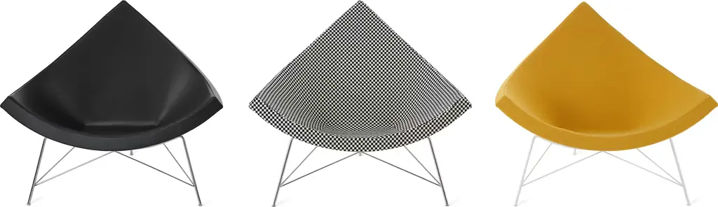 The Coconut Chair (1956) is completely true to George Nelson's original design, materials, and detailing. With the unique shell design, he accomplished his goal of providing comfortable and attractive lounge seating that provides freedom of movement so that people can sit in just about any position they choose. This midcentury furniture icon has a simple, striking shape, serving as a comfortable place to unwind at home or in the private office or lounge.