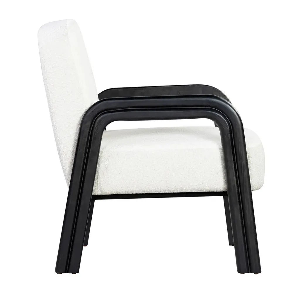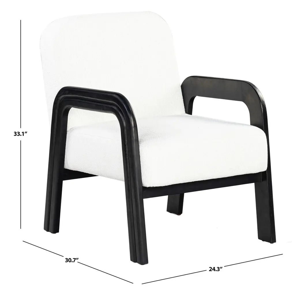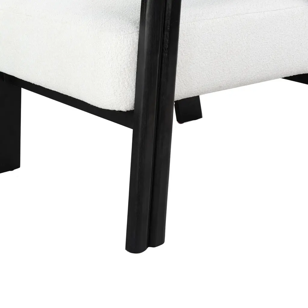 Introducing the Nerissa Boucle Accent Chair, a symbol of timeless elegance and undeniable comfort. This standout chair is designed with exquisite attention to detail, making it that coveted accent piece your living space needs. The robust construction of this chair is of unrivaled quality, known for its durability and strength. The natural grains of the wood are a visual treat that adds a rustic charm, blending the old-world touch with modern design principles seamlessly. What makes this chair even more unique is its plush Boucle fabric that is equally handsome and operose, thanks to its iconic curled yarns. This textured fabric adds a touch of warmth to any room it graces, turning it into a cozy retreat you'd love to lounge in. Not only does it add a plush appeal with its tactile refinement, but it also speaks about your sophisticated taste in décor. Experience ultimate comfort cocooned in luxurious fabric, seated atop sturdy wood - with the Nerissa Boucle Accent Chair, you are going for not just a piece of furniture, but a lifestyle choice. Elevate your living space effortlessly!