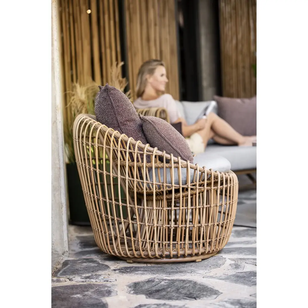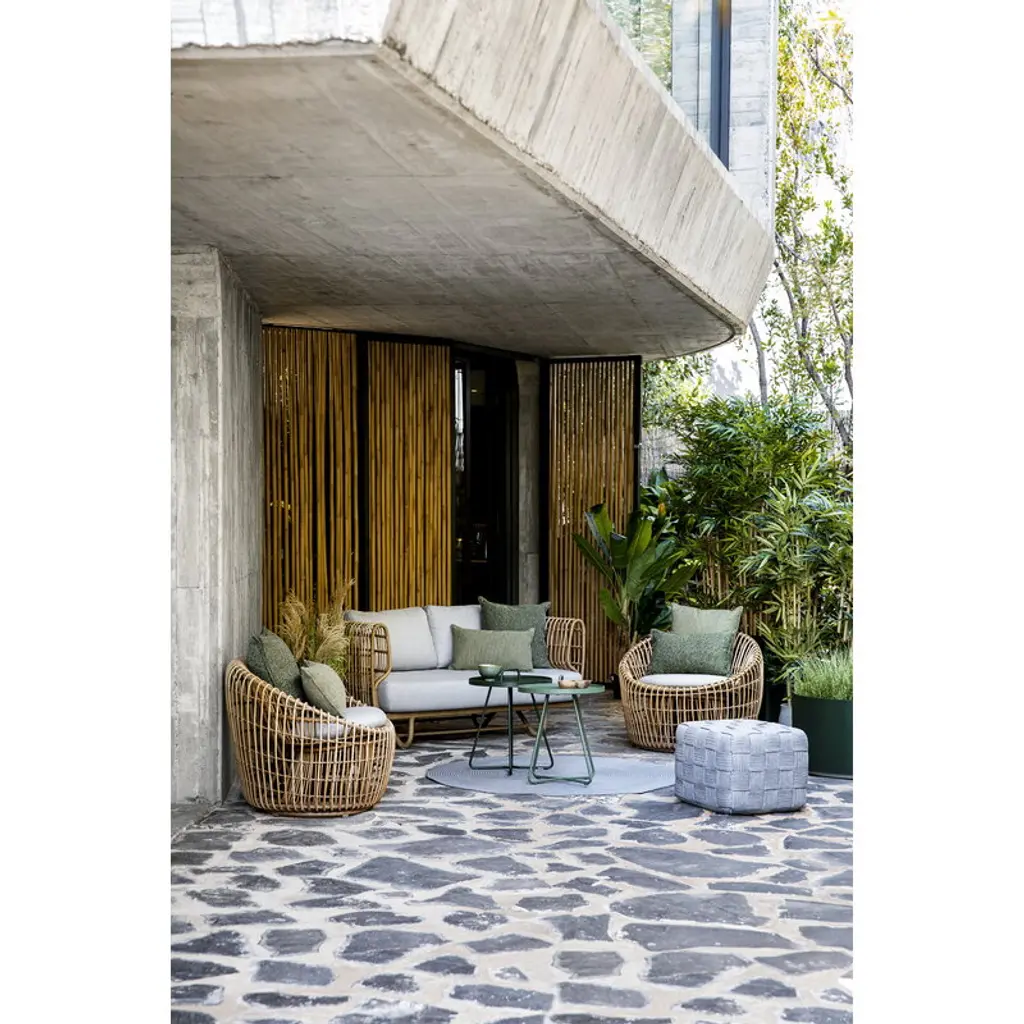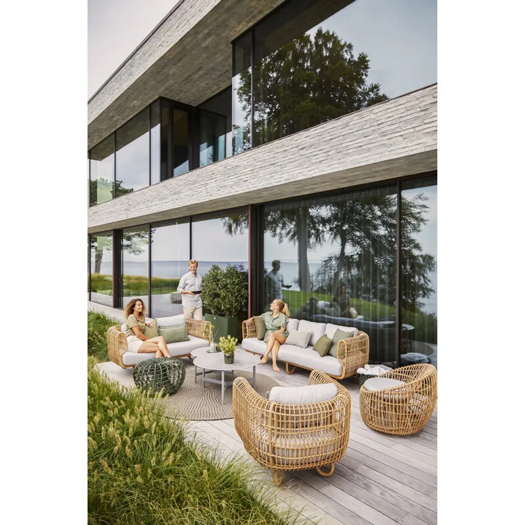 Cane-line’s Nest round outdoor chair is a fine example of Danish design. Designed by Foersom & Hiort-Lorenzen, the chair is made of aluminum and Cane-line Weave and completed with cushions especially designed for outdoor use. Cane-line Weave is a fiber made of dyed and hard-wearing polyethylene. The material is ideal for outdoor use as it is highly weather-resistant and maintains its colors and shape for years on end. Place the lounge chair on your patio, balcony or garden to create a cozy yet stylish reading nook or lounge area.
