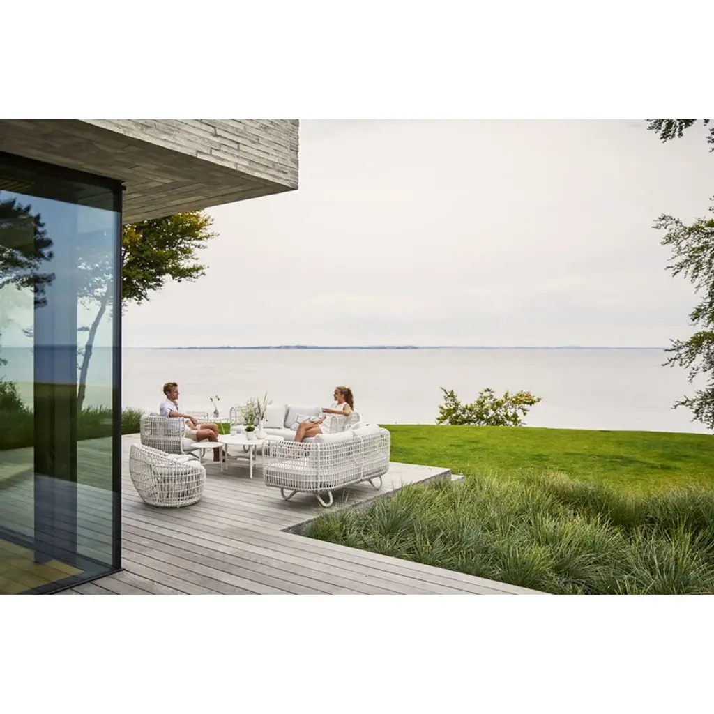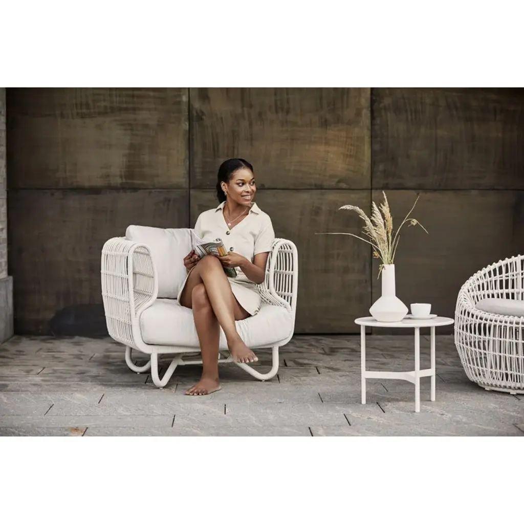 Cane-line’s Nest outdoor lounge chair is a fine example of Danish design. Designed by Foersom & Hiort-Lorenzen, the chair is made of aluminum and Cane-line Weave and completed with cushions especially designed for outdoor use. Cane-line Weave is a fiber made of dyed and hard-wearing polyethylene. The material is ideal for outdoor use as it is highly weather-resistant and maintains its colors and shape for years on end. Place the lounge chair on your patio, balcony or garden to create a cozy yet stylish reading nook or lounge area.