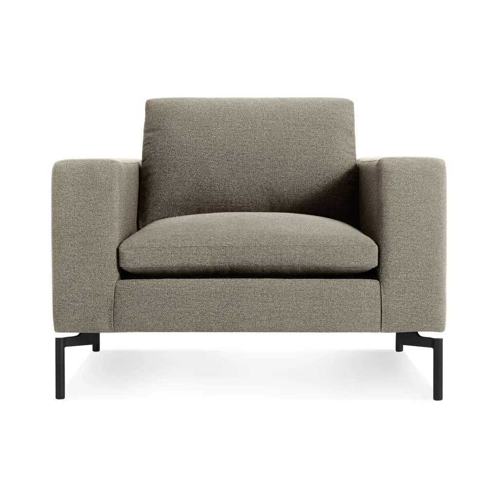 The Blu Dot New Standard Lounge Chair brings effortless sophistication to any interior. Supported by sleek, angled legs, its inviting cushions and wide arms serve as a comfortable retreat for long afternoons and evenings spent relaxing. With a range of neutral fabric choices, this premium chair creates an exclusive atmosphere in any space. Highlights