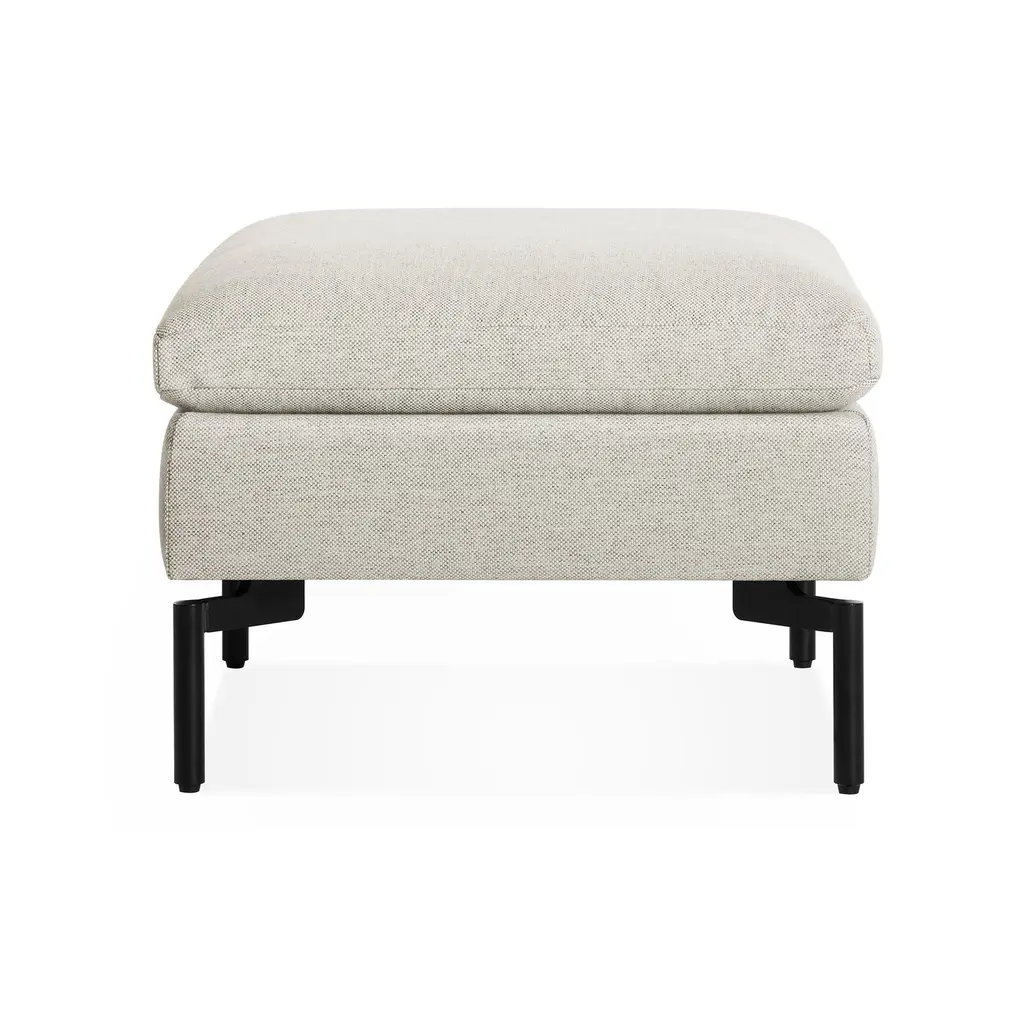 Sometimes it is not about starting from scratch, but rather revisiting past designs and making them better. The New Standard modern ottoman is simplicity at its best with a twist. Now new and improved. Wide arms and inviting loose cushions all come together with tuned proportions and show stopping legs.
