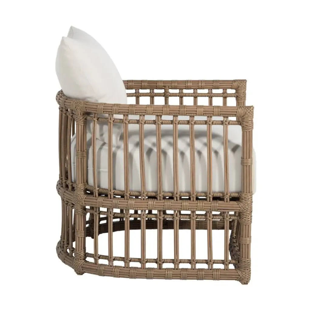 The Newport Barrel Chair evokes the mid-century look of vintage rattan furniture that's as timeless and classic as it is beautiful. Handwoven in UV-resistant N-dura™ resin wicker for long-lasting enjoyment, the gracefully curved back and subtle lean add extra style to this comfortable outdoor seat.
