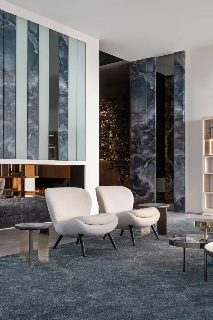 Niels is a comfortable reading armchair with a moulded structure that reinterprets the past in a modern key. Its versatility, made possible by the numerous fabrics and colours available, allows original combinations to be configured to suit different contexts, from private to public spaces.