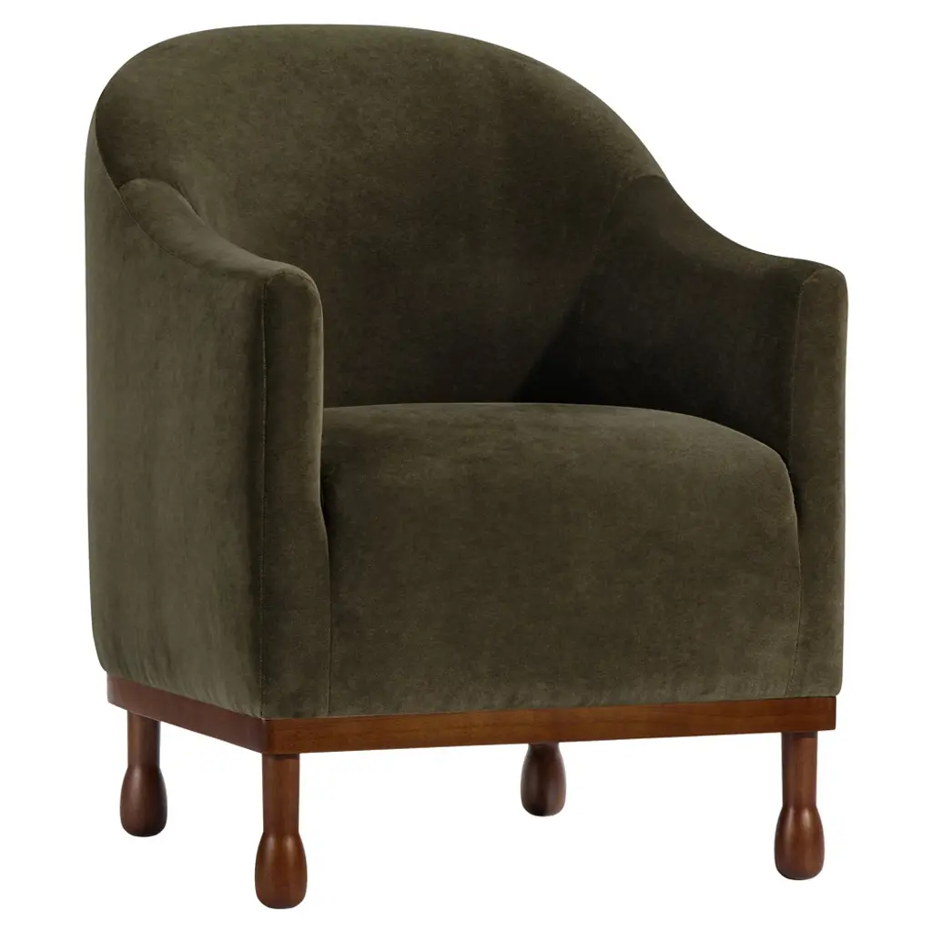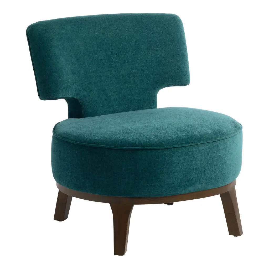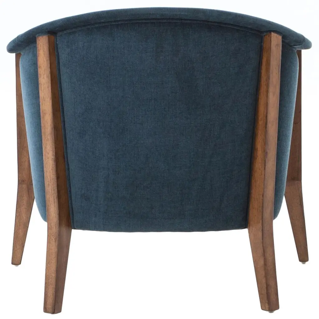 French Deco elegance inspired this chair's sleek curves and unexpected angles. Complementing the parawood legs is stain-resistant performance fabric in a rich blue; because the upholstery has a 25,000 rub rate, it will withstand daily use. S-spring seat construction ensures long-lasting comfort.