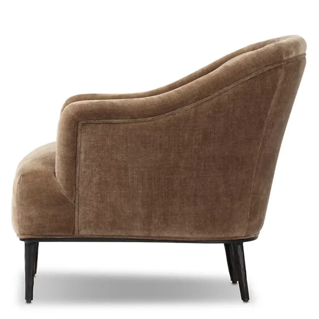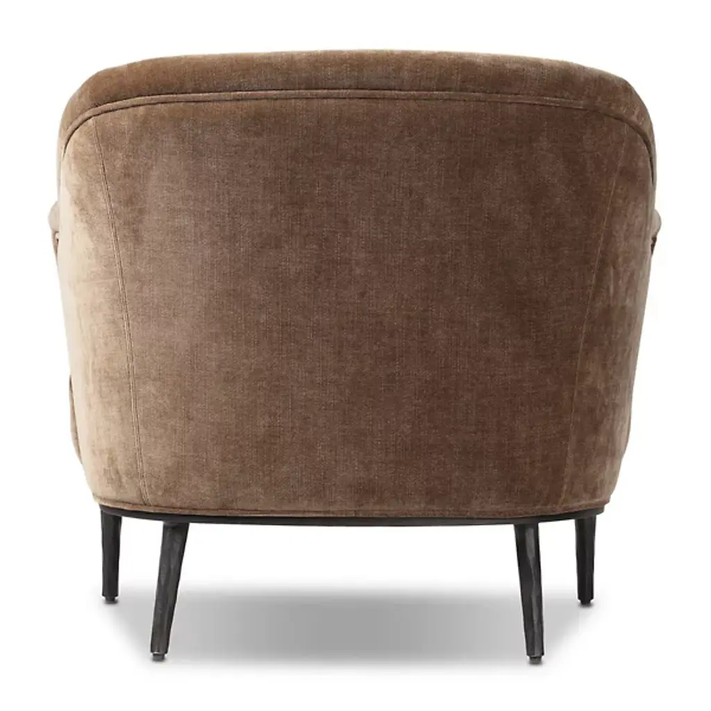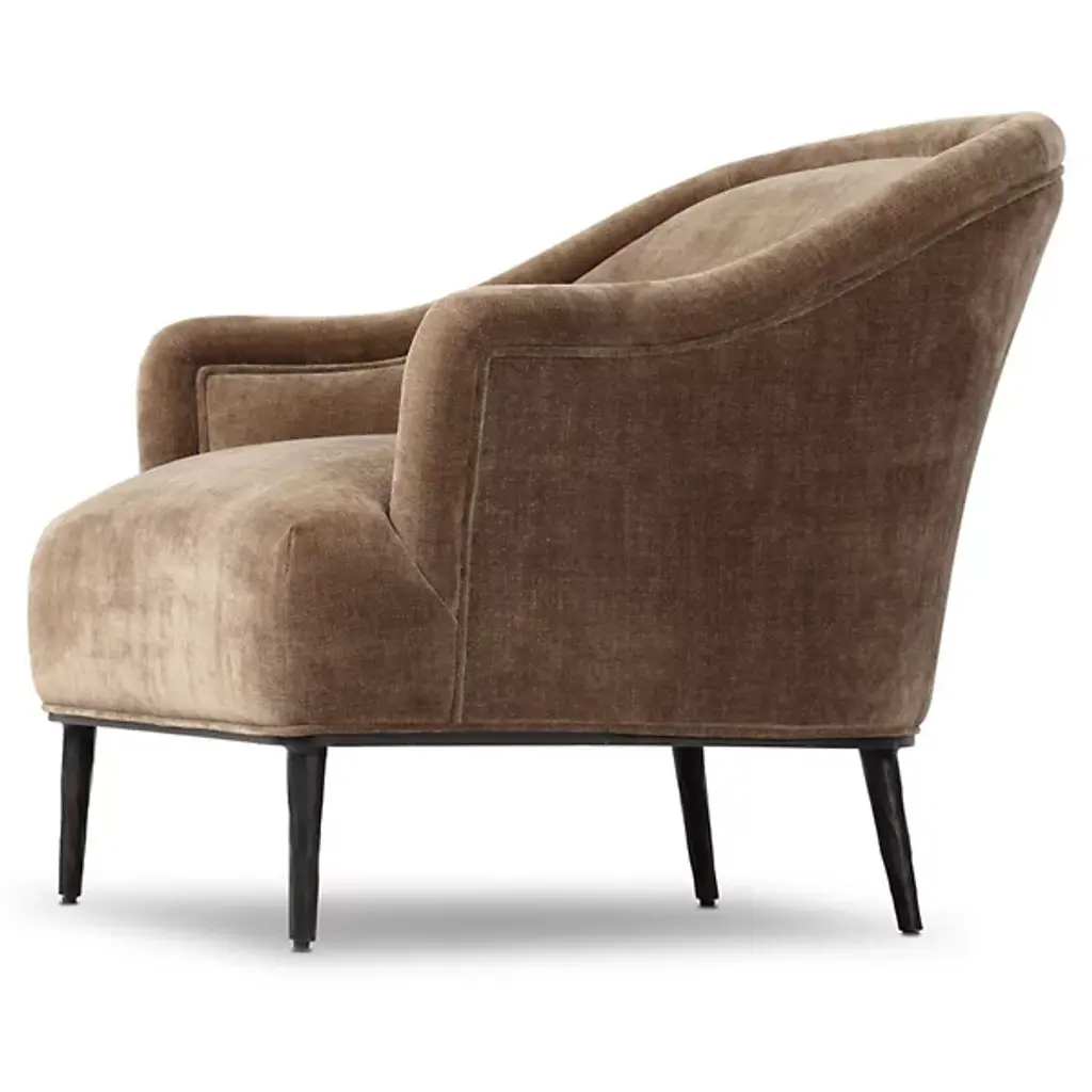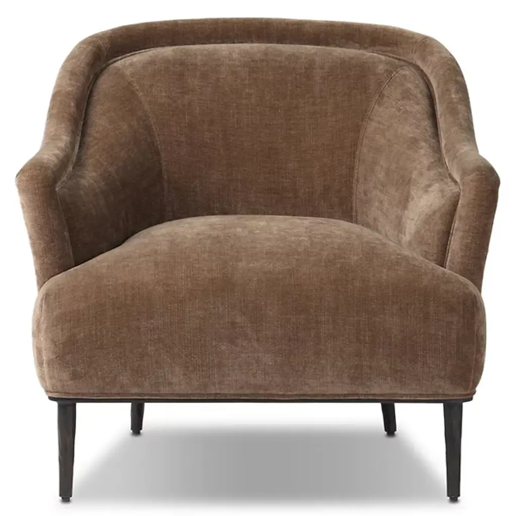 The Noel Lounge Chair from Four Hands wraps generously scaled upholstery around a curved back that flows seamlessly into protective arms. This enveloping profile creates intimate seating that shields the occupant while maintaining open sight lines throughout the room. Polyester fabric covers the entire form in consistent texture while slim iron legs provide structural support that nearly disappears beneath the substantial cushioning. The oversized proportions prioritize comfort without sacrificing the clean geometric lines that define contemporary furniture aesthetics.