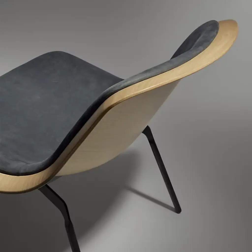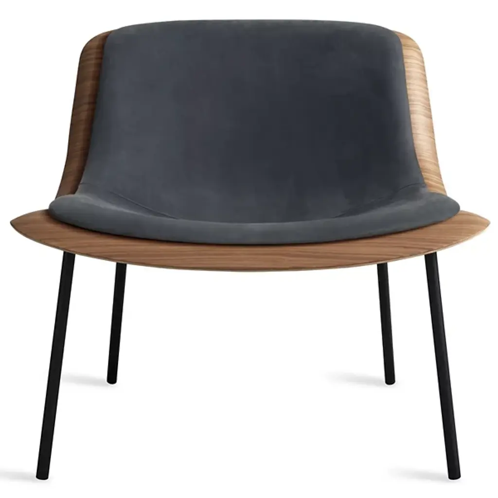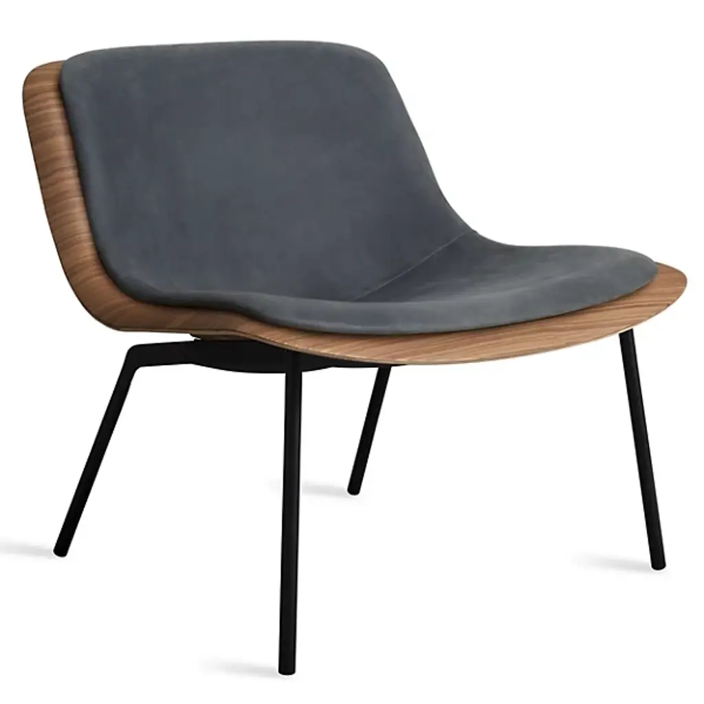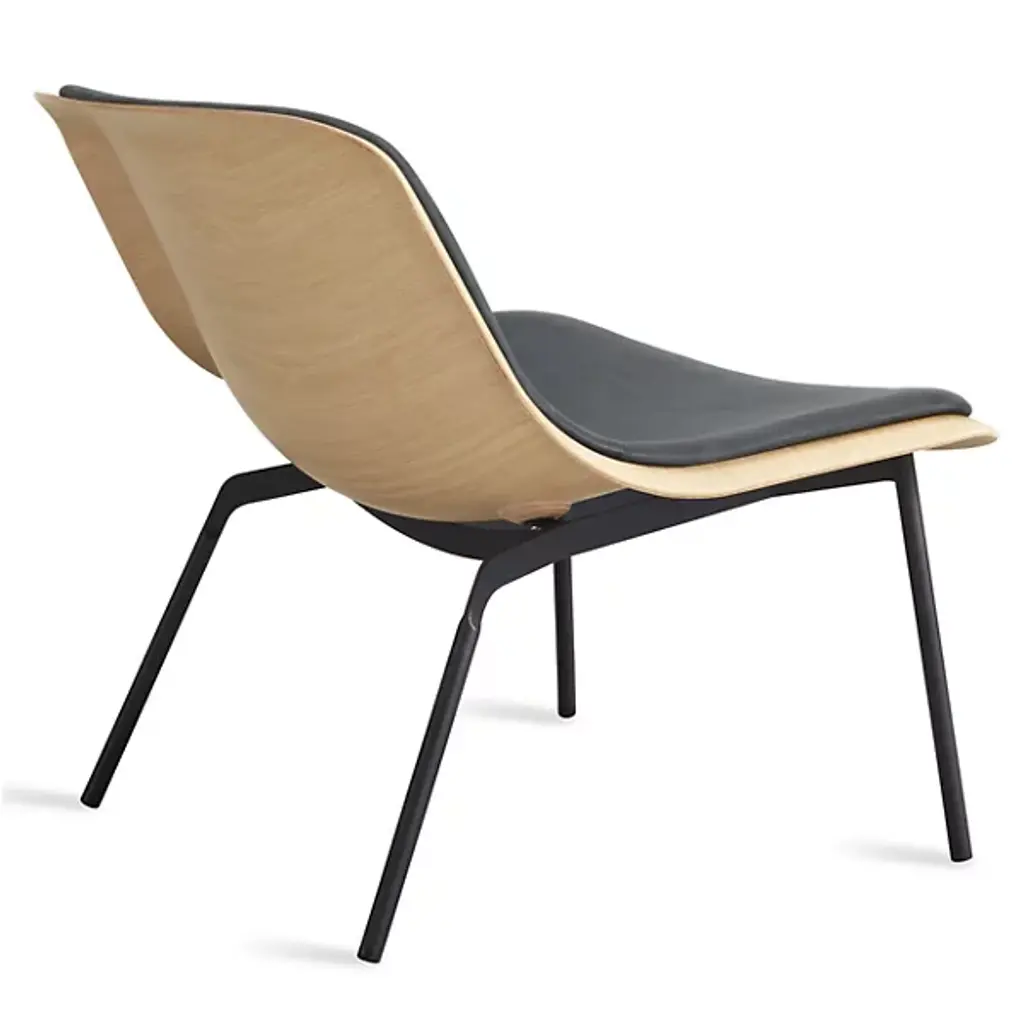 The Nonesuch Leather Lounge Chair from Blu Dot features 3D bent plywood construction that creates graceful contours visible from every angle. The sculpted seat accommodates a custom-fitted upholstered pad that provides comfortable seating while maintaining the chair's architectural integrity. Aniline leather cushioning develops beautiful variations through use, with natural markings becoming more pronounced over time. This chair excels in reading nooks, home offices, or living areas where its sculptural qualities can be appreciated as functional art.