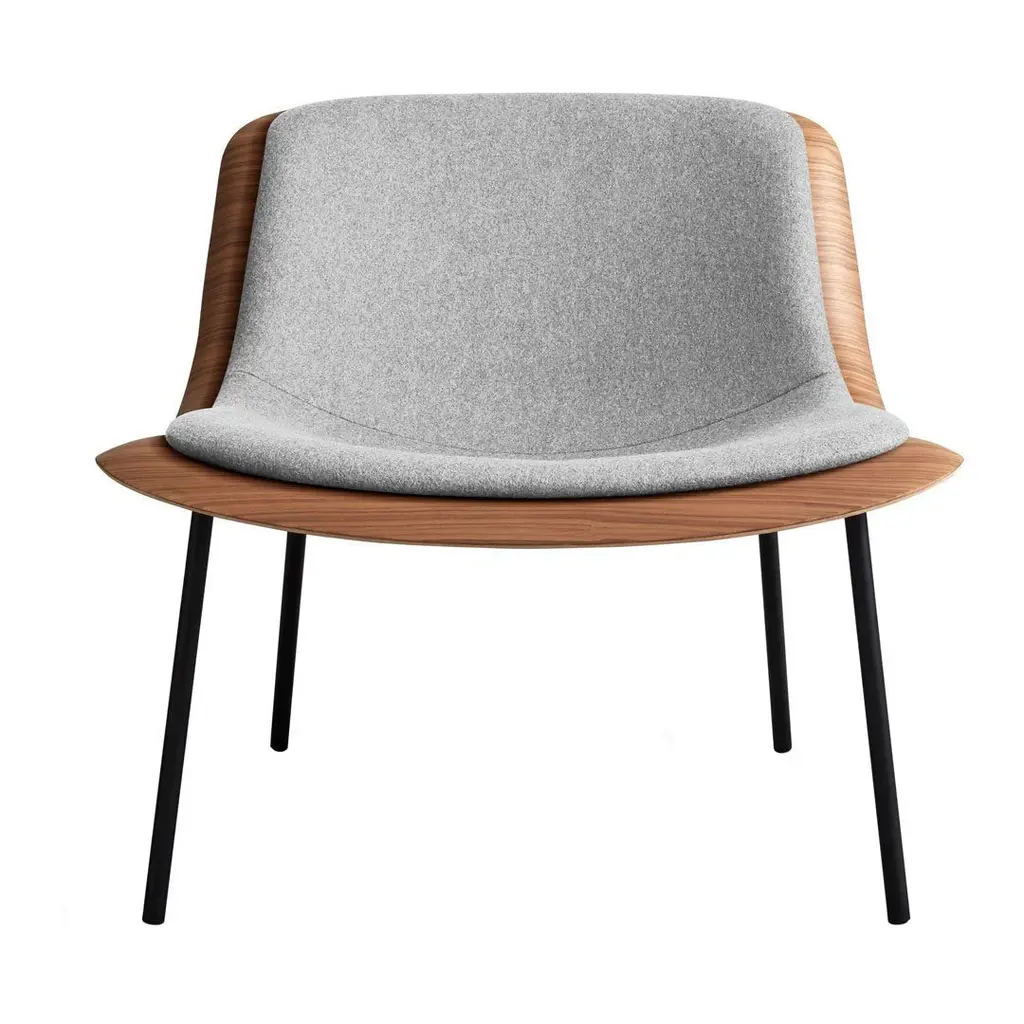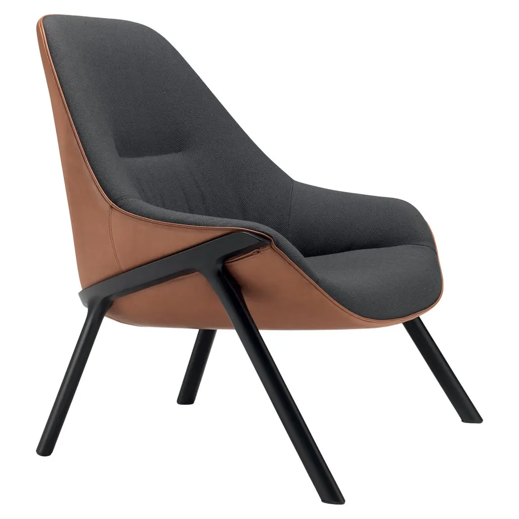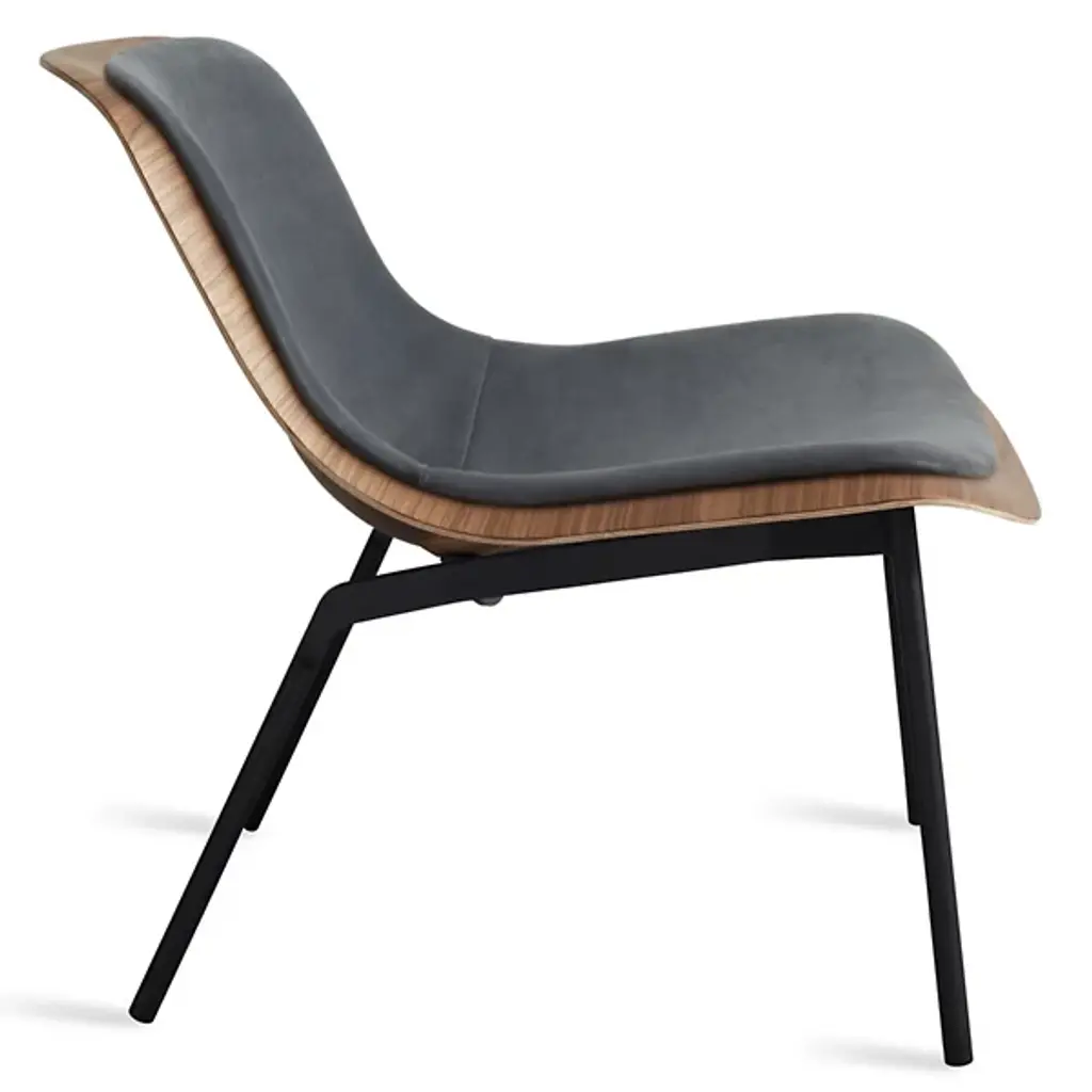 The Nonesuch Leather Lounge Chair from Blu Dot features 3D bent plywood construction that creates graceful contours visible from every angle. The sculpted seat accommodates a custom-fitted upholstered pad that provides comfortable seating while maintaining the chair's architectural integrity. Aniline leather cushioning develops beautiful variations through use, with natural markings becoming more pronounced over time. This chair excels in reading nooks, home offices, or living areas where its sculptural qualities can be appreciated as functional art.