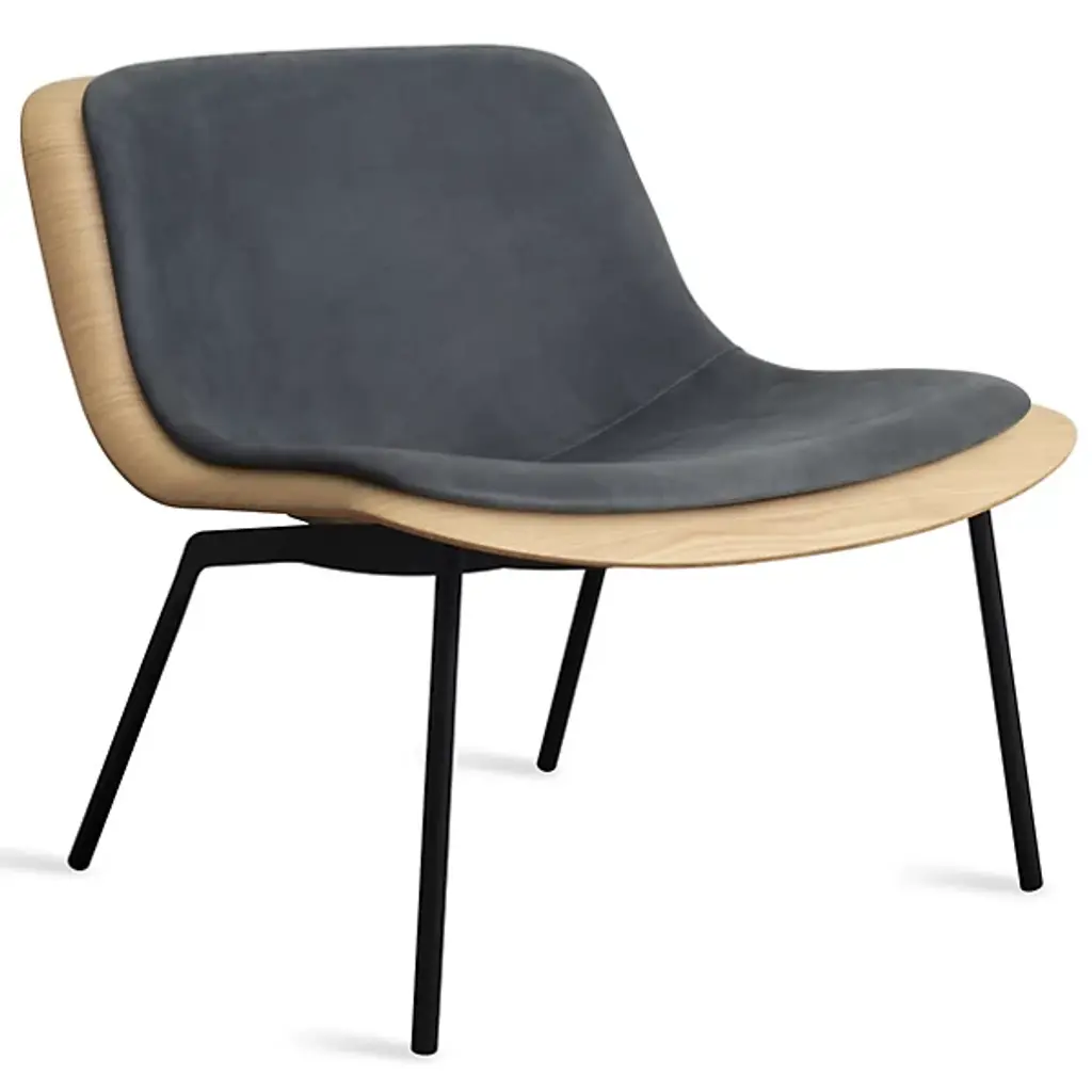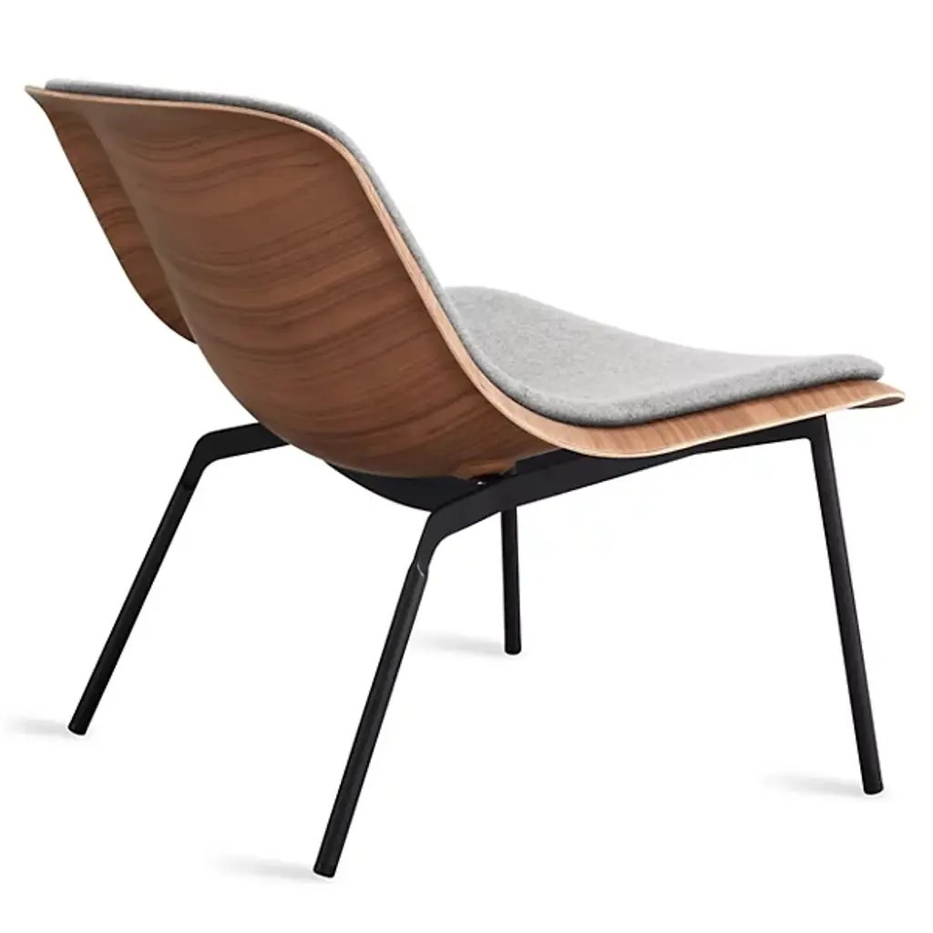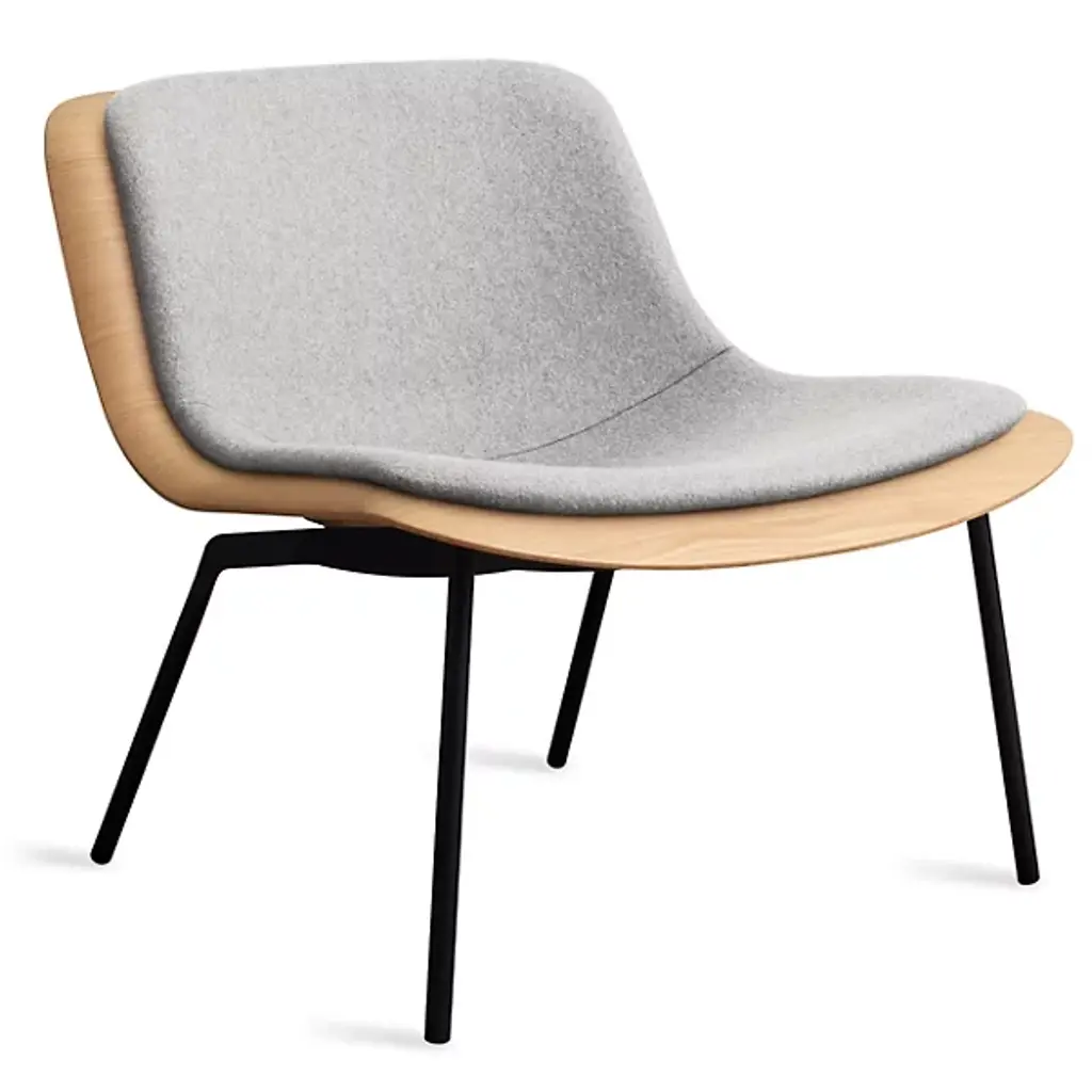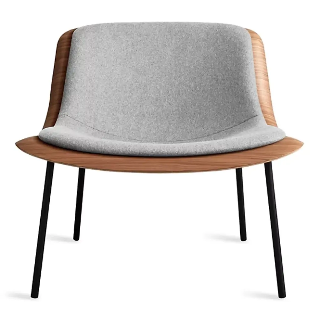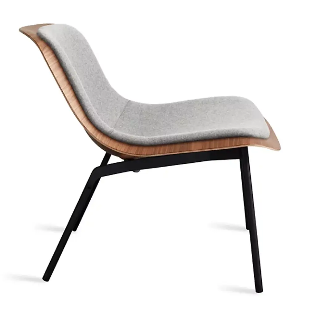 Exceptional elegance and easy comfort. The Nonesuch Upholstered Lounge Chair by Blu Dot presents a super sophisticated shell chair silhouette through its softly curving 3D bent ply. Powder-coated steel legs support its frame, seemingly leaning forward to offer you a seat. Its wide shape ensures you have all the necessary lounging space, while its minimal look appeals to a variety of interior décor stories. Great in a living room, office, or bedroom, you can relax in any room when this chair is present.