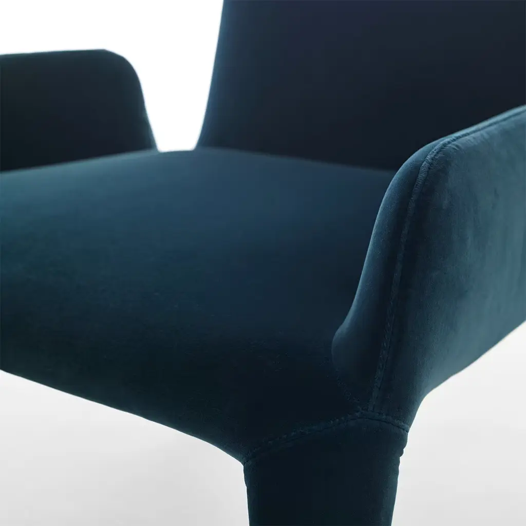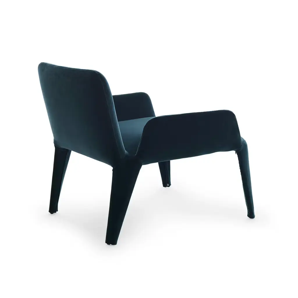 Part of the Nova collection of lightweight, modern furniture for smaller, contemporary spaces designed by Federico Carandini in 2015, this armchair boasts a minimalist silhouette where the deep blue fabric upholstery covers a metal structure with elastic support belts and cushions in polyurethane with dacron lining. Paired with the Nova 2-Seat Sofa for a cohesive effect, this piece can be upholstered with leather as well, and is available also without armrests - please ask the concierge for details. The cover is completely removable.
