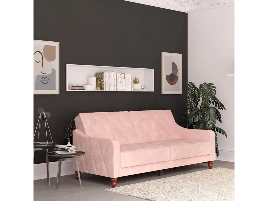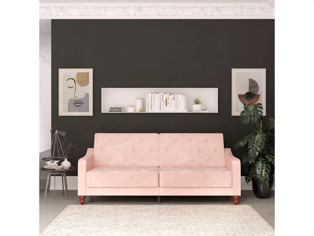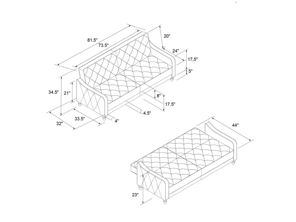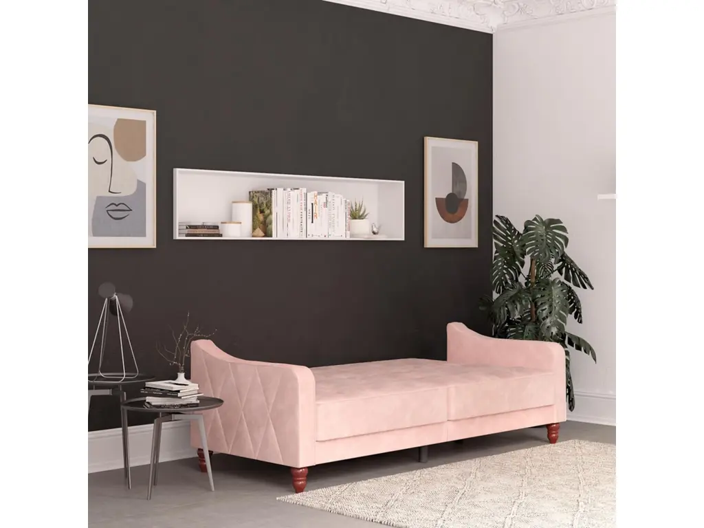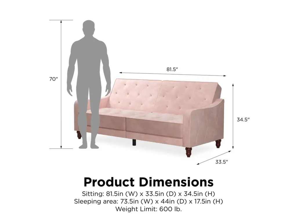 The Novogratz Vintage Tufted Split Back Futon is the best way to make a style statement in your home! In fact, this sofa does everything for you. Made with a robust wooden frame, its elegant design pops in adventurous colors that will make sure to leave a lasting impression. The split-back feature is ideal when looking for functionality: it can be independently reclined to multiple positions, which allows you to sit, lounge and even sleep! Upholstered in soft velvet with diamond-tufted seat, cushion and arms, it has Victorian style legs that add the last touch. Pair it with the Novogratz Vintage Tufted armchair and/or ottoman to achieve a complete look and bring on the fun!