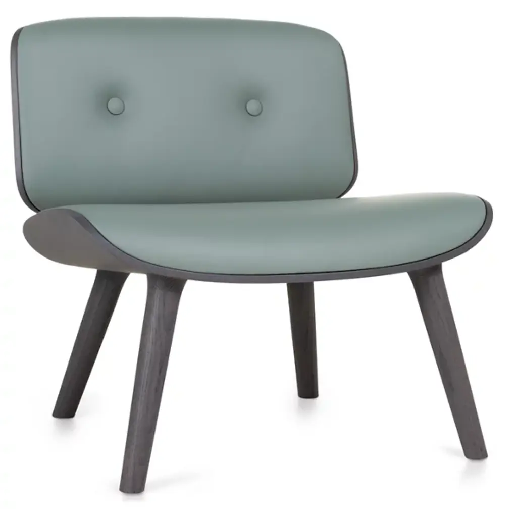 Find the right place for a restful moment atop the embracing design of the Nut Lounge Chair from Moooi. Creator Marcel Wanders Studio's work brings the human touch back to design with an approach centered on reuniting the craftsperson, designer, and user. The skill of the craftsperson is on full display in the chair's honed wood legs. The bent plywood shell impresses from all angles with a graphic quality. Artisans apply cozy upholstered cushions that hug the body with a low profile. Button tuft accents underscore the chair's laid-back character.