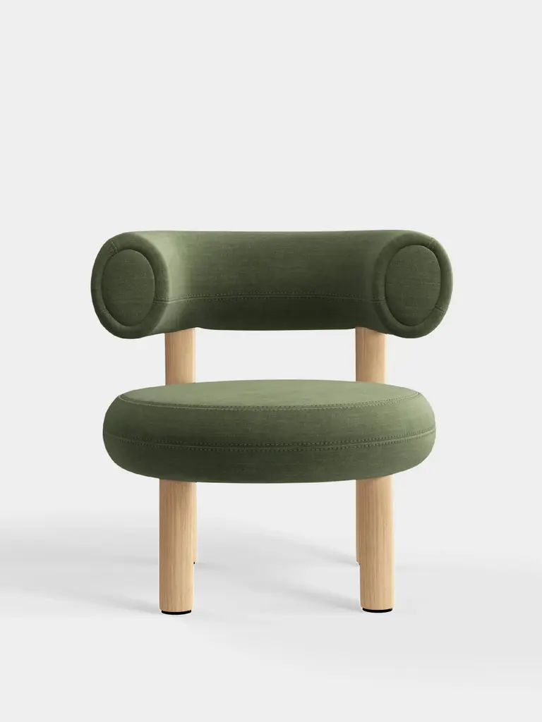 Find the right place for a restful moment atop the embracing design of the Nut Lounge Chair from Moooi. Creator Marcel Wanders Studio's work brings the human touch back to design with an approach centered on reuniting the craftsperson, designer, and user. The skill of the craftsperson is on full display in the chair's honed wood legs. The bent plywood shell impresses from all angles with a graphic quality. Artisans apply cozy upholstered cushions that hug the body with a low profile. Button tuft accents underscore the chair's laid-back character.