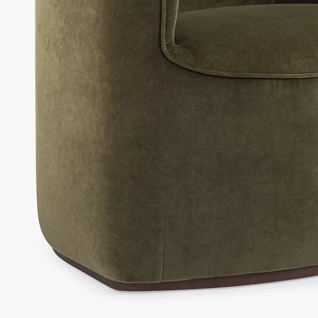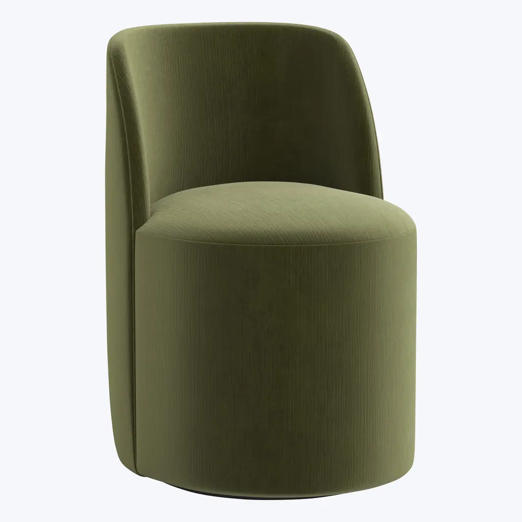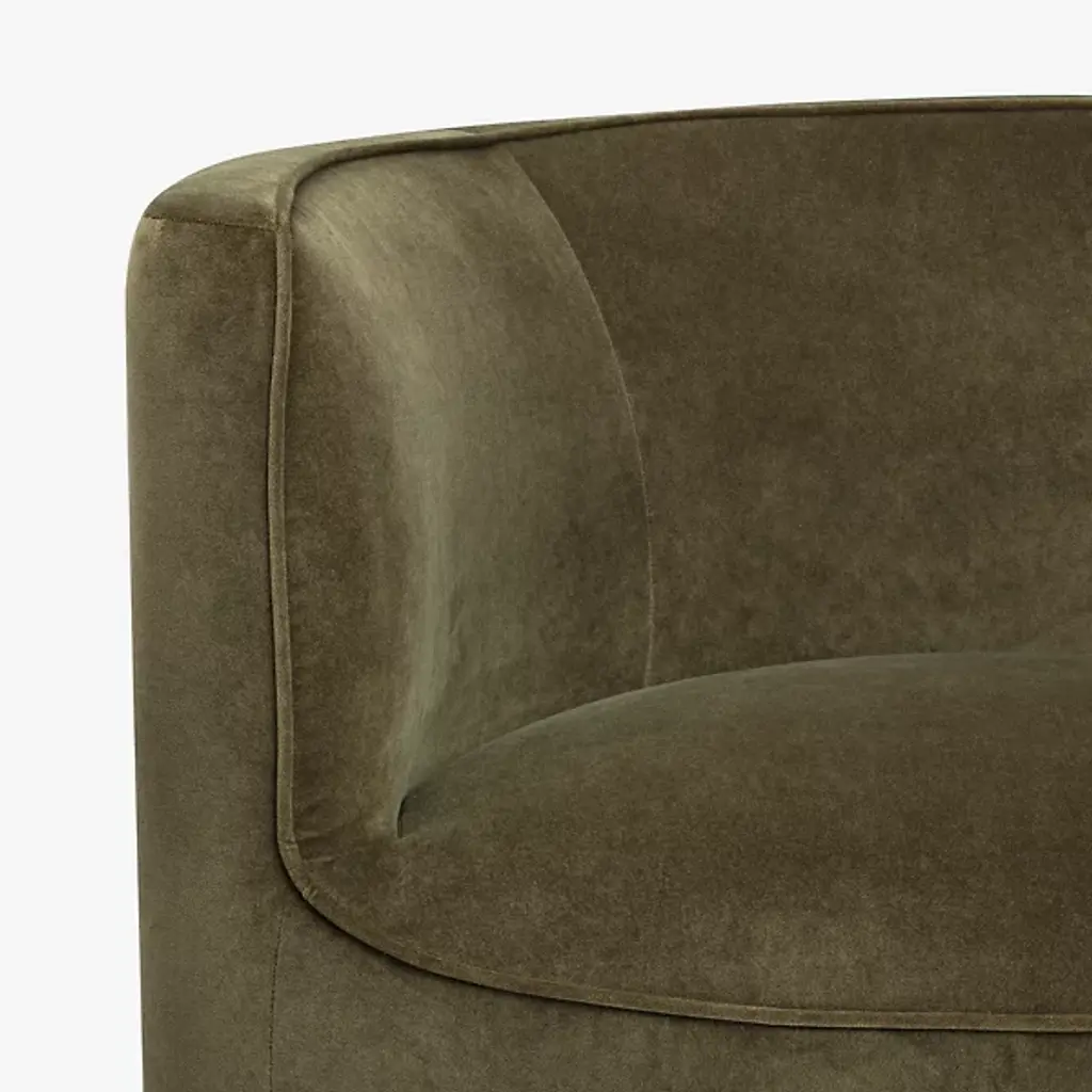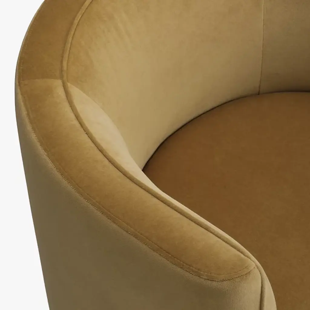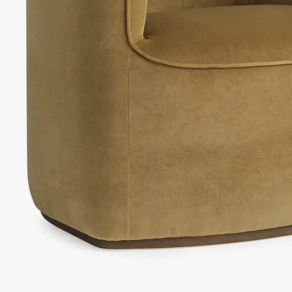 The Nyssa Occasional Chair from Alder & Ore reinterprets classic barrel design with contemporary flair. Its subtle curves and delicate piping create a visual rhythm that's both soothing and intriguing, inviting the eye to explore every contour. The recessed wooden plinth adds a final note of sophistication. The sinuous spring construction ensures comfort that matches the chair's aesthetic appeal, providing support that molds to the body. This piece creates a micro-environment of comfort and style, perfect for reading nooks or intimate conversations.