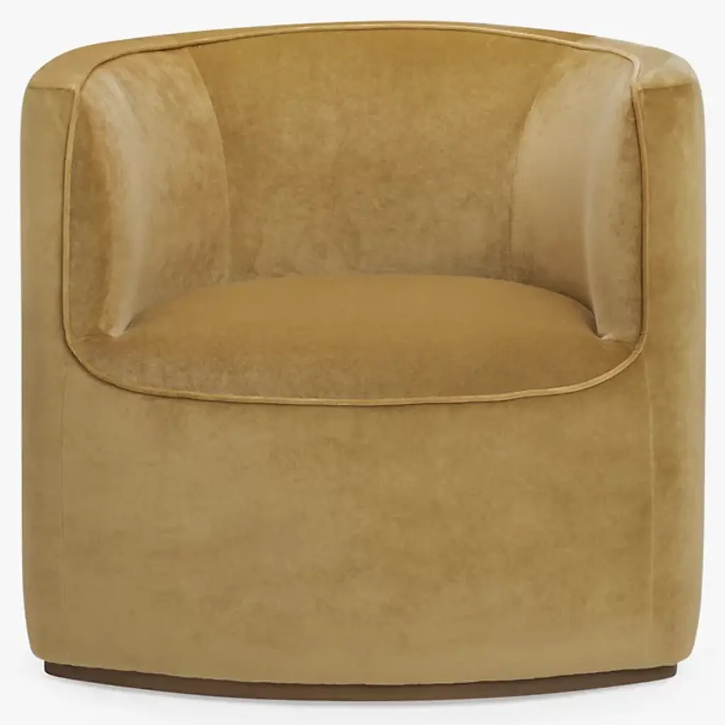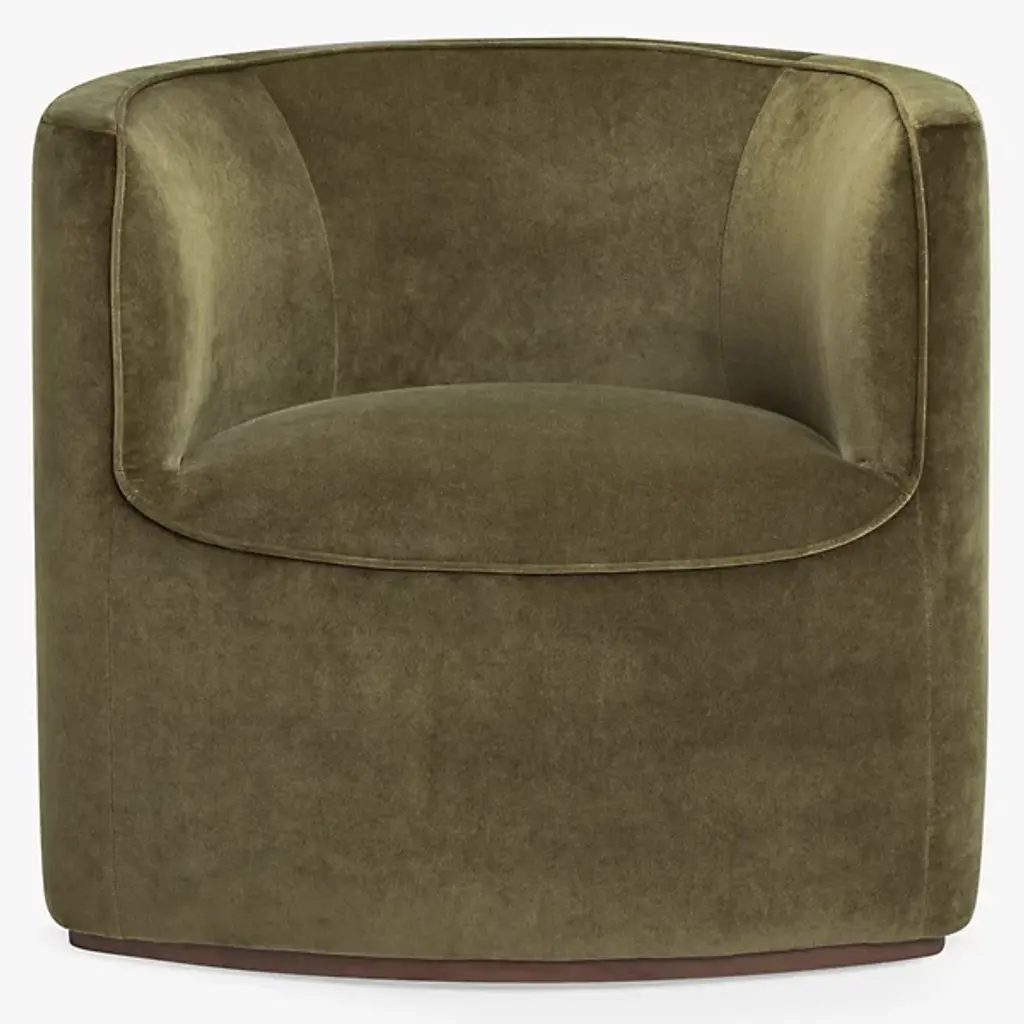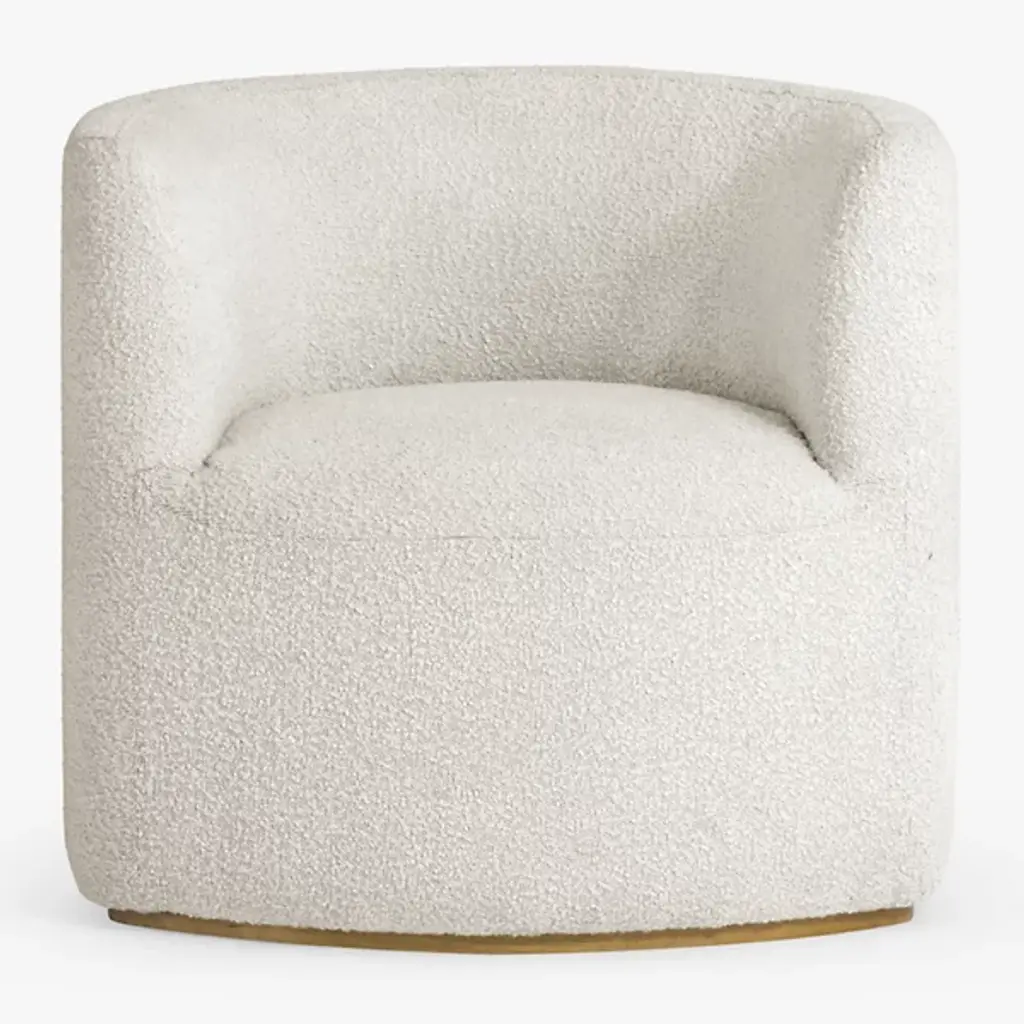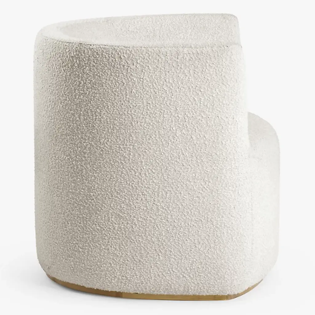 The Nyssa Occasional Chair from Alder & Ore reinterprets classic barrel design with contemporary flair. Its subtle curves and delicate piping create a visual rhythm that's both soothing and intriguing, inviting the eye to explore every contour. The recessed wooden plinth adds a final note of sophistication. The sinuous spring construction ensures comfort that matches the chair's aesthetic appeal, providing support that molds to the body. This piece creates a micro-environment of comfort and style, perfect for reading nooks or intimate conversations.