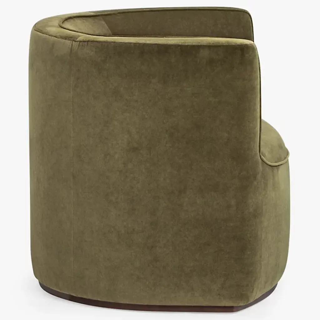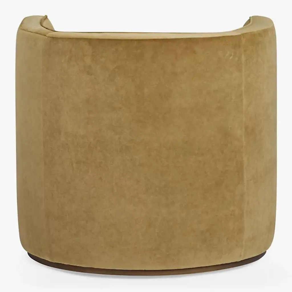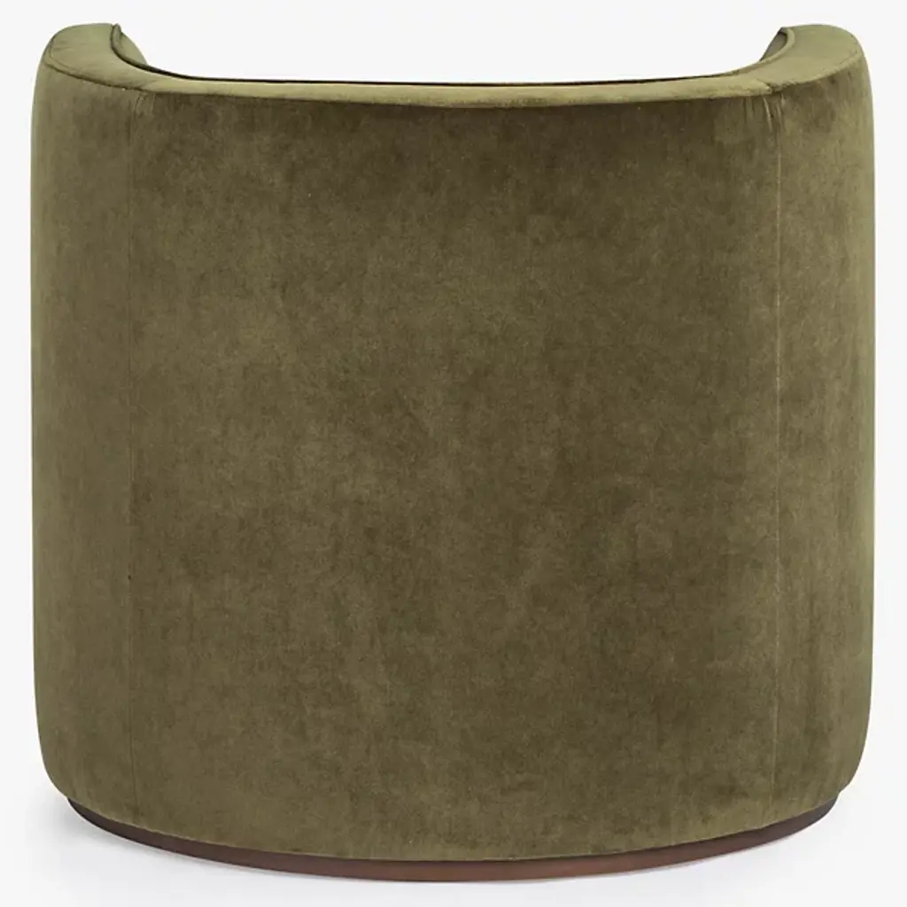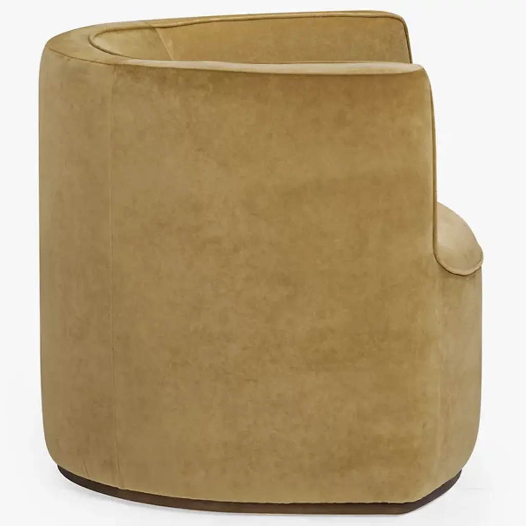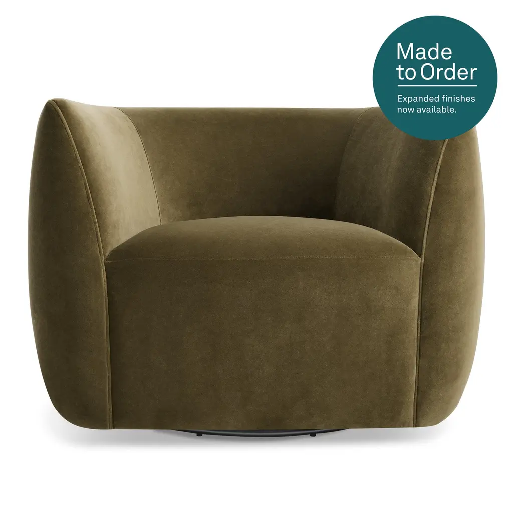 The Nyssa Occasional Chair from Alder & Ore reinterprets classic barrel design with contemporary flair. Its subtle curves and delicate piping create a visual rhythm that's both soothing and intriguing, inviting the eye to explore every contour. The recessed wooden plinth adds a final note of sophistication. The sinuous spring construction ensures comfort that matches the chair's aesthetic appeal, providing support that molds to the body. This piece creates a micro-environment of comfort and style, perfect for reading nooks or intimate conversations.