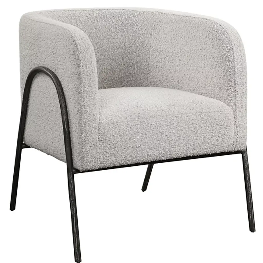 The Oberon Boucle Accent Chair is presented by Alder & Ore. It’s an eye-catching masterpiece that seamlessly blends modern design and luxurious comfort. The encompassing silhouette exudes a sense of coziness and elegance, adorned with lush boucle upholstery. It not only looks exquisite but also feels incredibly soft and inviting. The Bauhaus inspired tripod leg base exudes architectural allure, while the contoured club chair outline embraces your body, providing both support and relaxation.