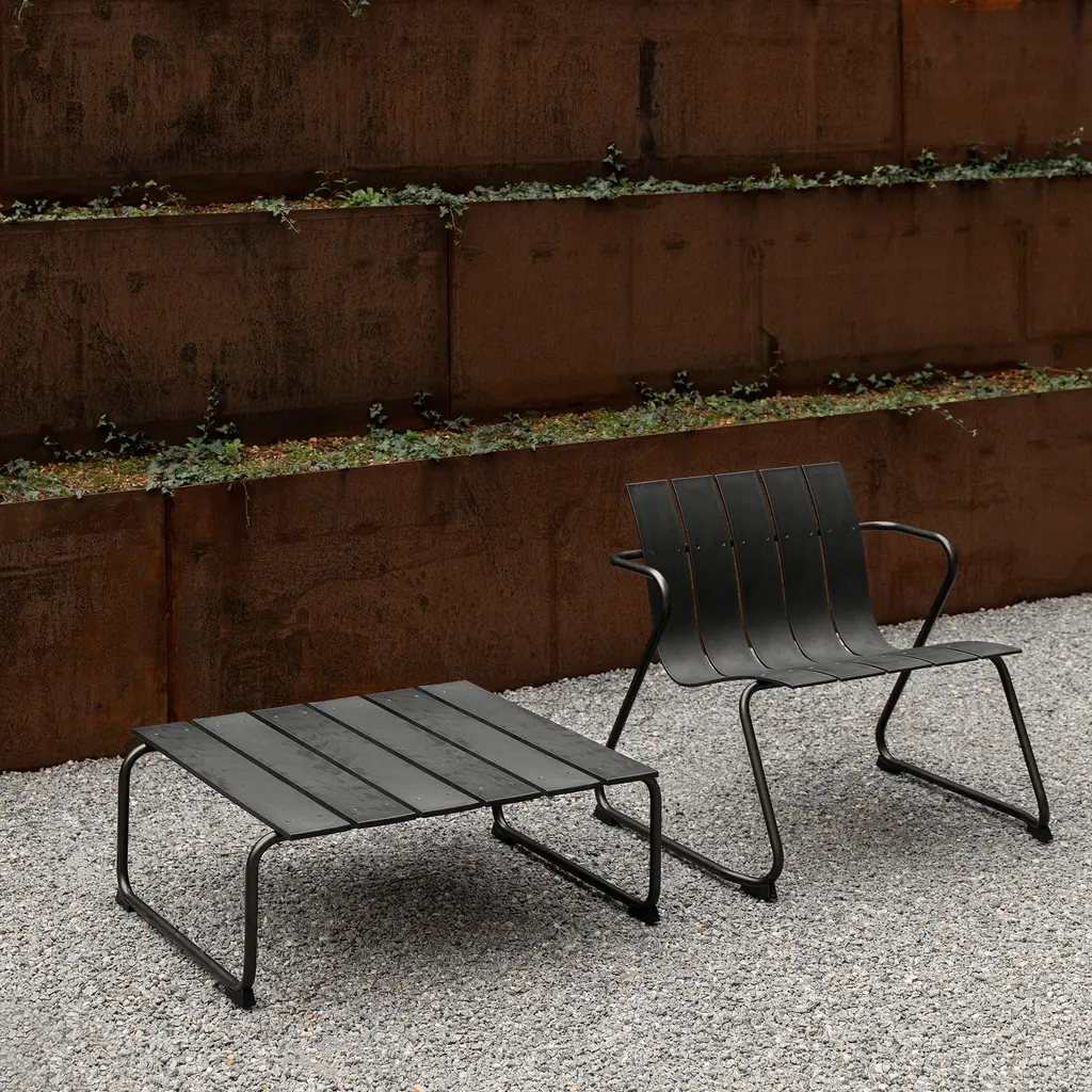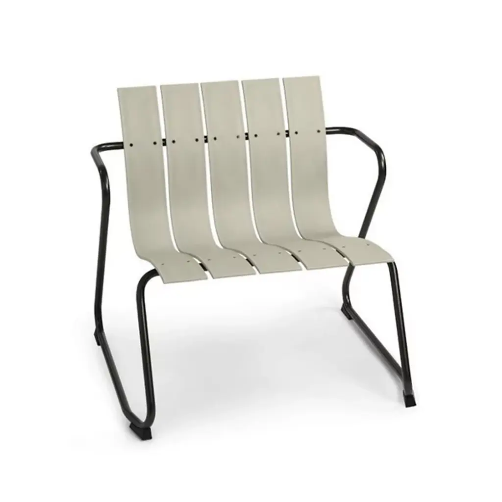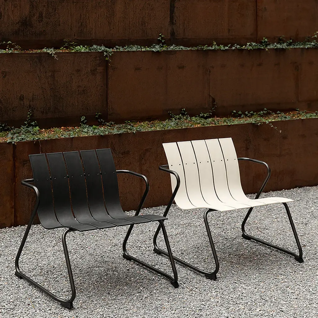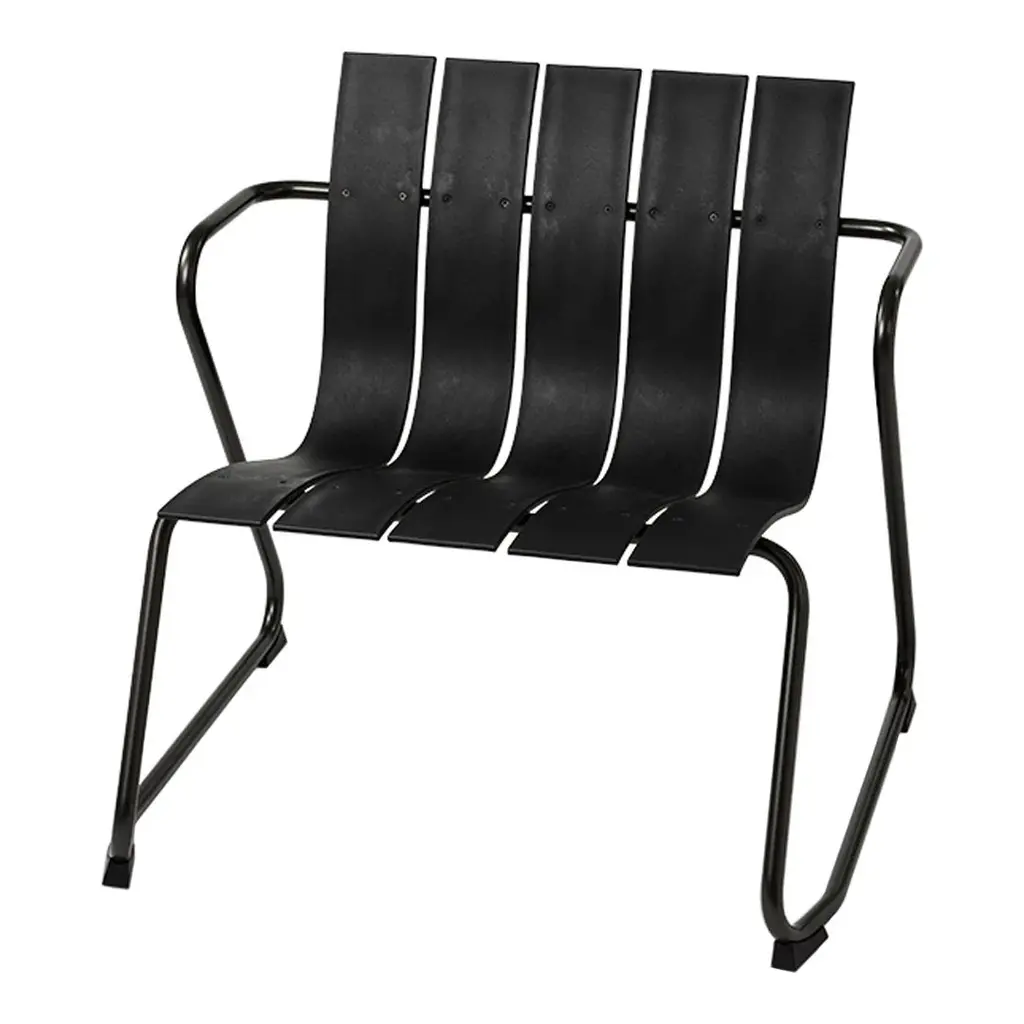 A lounge chair for sprawling joins Mater’s sustainable take on a midcentury outdoor classic. Ocean replaces the 1955 original’s wood veneer with slats made from discarded fishing nets mixed with upcycled hard plastic—the equal of 2 1/2 pounds of ocean waste. Legendary designers Jørgen and Nanna Ditzel’s series is denoted by its invitingly airy contours and sleek steel frame with a gunmetal finish.