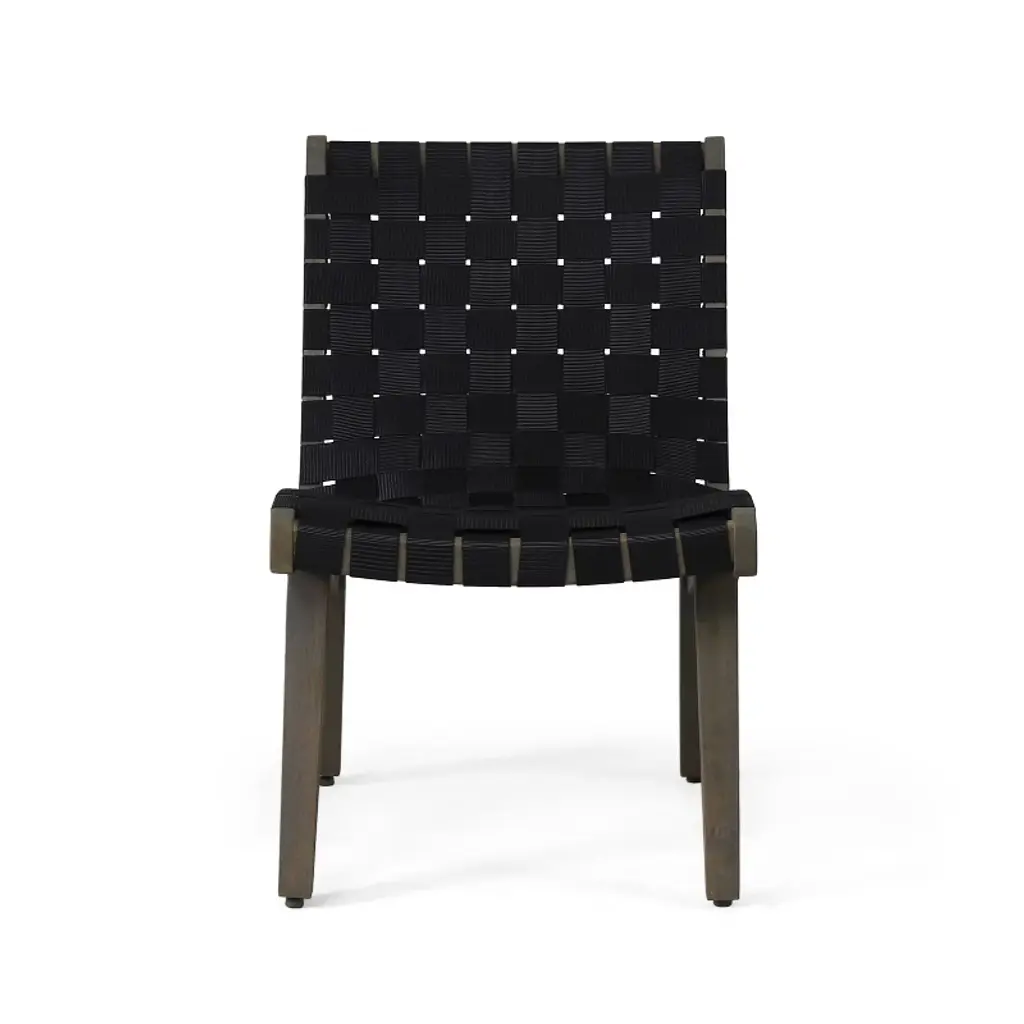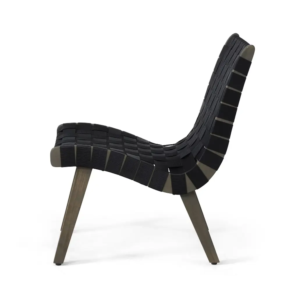 Okak 16.7" Rustic Rope Strap Woven Patio Accent Chairs Acacia Lounge Chair For Garden,porch,poolside&backyard,patio Furniture Seating,black