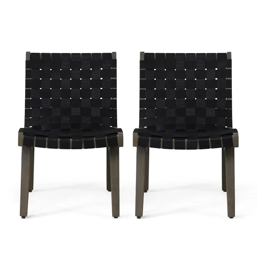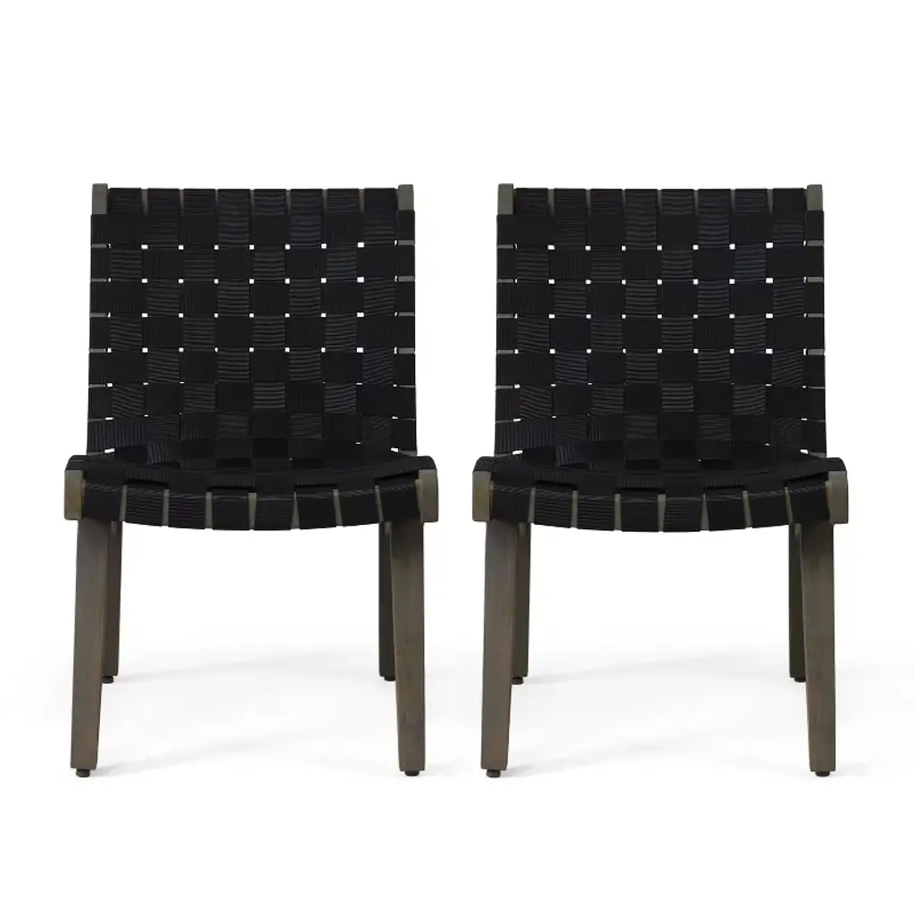 Transitional Outdoor Lounge Chair Set - Elevate your outdoor space with this transitional-style lounge chair set, offering a minimalist yet modern aesthetic that complements any existing decor. Featuring an intricate rope strap weave, these chairs provide exceptional durability and a unique texture that enhances both style and comfort. Crafted with a sturdy acacia wood frame, known for its sleek, exotic appearance and natural resistance to outdoor elements, this hardwood will maintain its beauty without darkening over time. The set includes two lounge chairs with rope seats, iron accents, and solid acacia wood bases, combining elegance and strength. Perfect for patios, decks, or backyard retreats, this set effortlessly blends design and functionality to upgrade your outdoor living area.