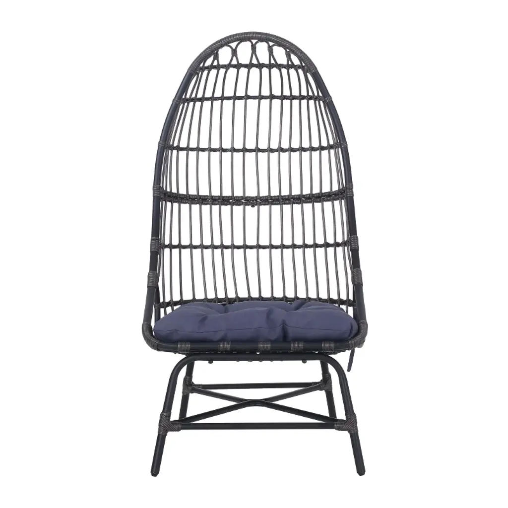 Embrace comfort and modern style with this elegant basket-shaped chair, designed to envelop you in a cozy, inviting structure perfect for lounging. Its distinctive oval silhouette and gridded pattern create a striking basket-inspired look that adds visual interest to any space. Crafted with beautiful faux rattan woven around a sturdy iron frame, this chair offers both durability and lightweight ease. The combination of materials ensures long-lasting use while maintaining a contemporary aesthetic. Whether placed indoors or on a covered patio, this basket chair brings both style and functionality to your home.Dimensions: 30.5" D x 26.75" W x 53" H, with a spacious seat measuring 20" D x 24.25" W x 15.5" H.