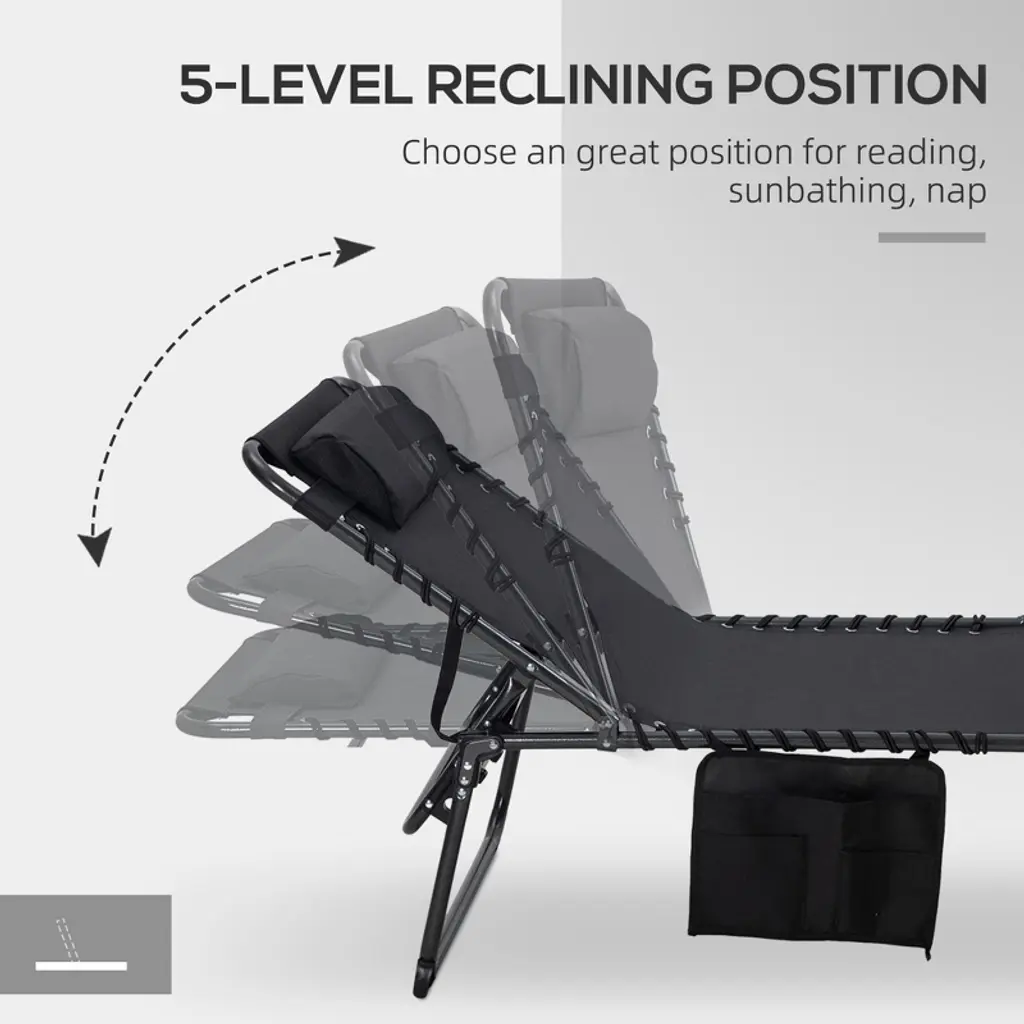 Okak 2Pcs Folding Chaise Lounge Reclining Tanning Chairs With Face Hole&side Pocket,set Of 2,patio Poolside Chaise Deck Chair For Beach,black