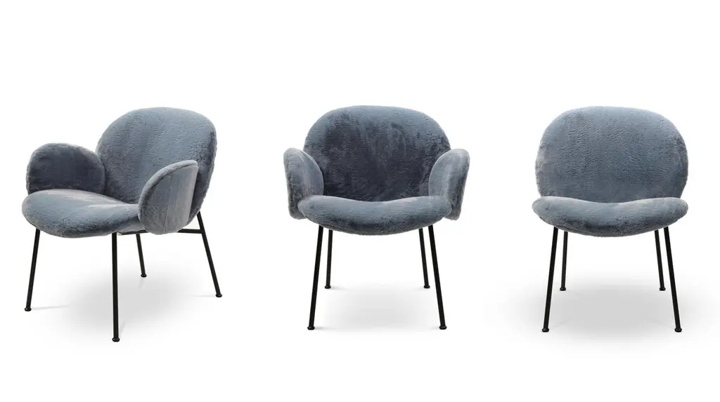 Ola originates from a simple idea but at the same time represents a complex concept – a welcoming arm chair created utilising four individual curved sheets. Each sheet converges towards a single centre. Four sheets become two sheets for the variation without arm rests. The metal frame has an essential and graphic silhouette in contrast with the padded rounded forms. The cover is completely removable.Structure: In plywood in birch with variable-density polyurethane foam polyester fiber 100 gr/sqm.Feet: In painted or chromed iron with a diameter of 18mm.Padding: The seat cushion is in polyurethane foam covered with polyester fiber 100 gr/sqm.Additional information:Material: Plywood, iron, polyurethane foam, upholsteryLeg finish: Black NickelUpholstery: Vip, J’Adore E1 - col.07Dimensions: 67 W x 74 D x 78 H cmSeat height: 45 cmAvailable in other upholstery options: C, E, lusso, top, special, elite, royal, pelle club, pelle florida, pelle masterAvailable in other leg finish options: Satin Brass, Chrome, Grey paintedAvailable in other structural option: Without Armrest