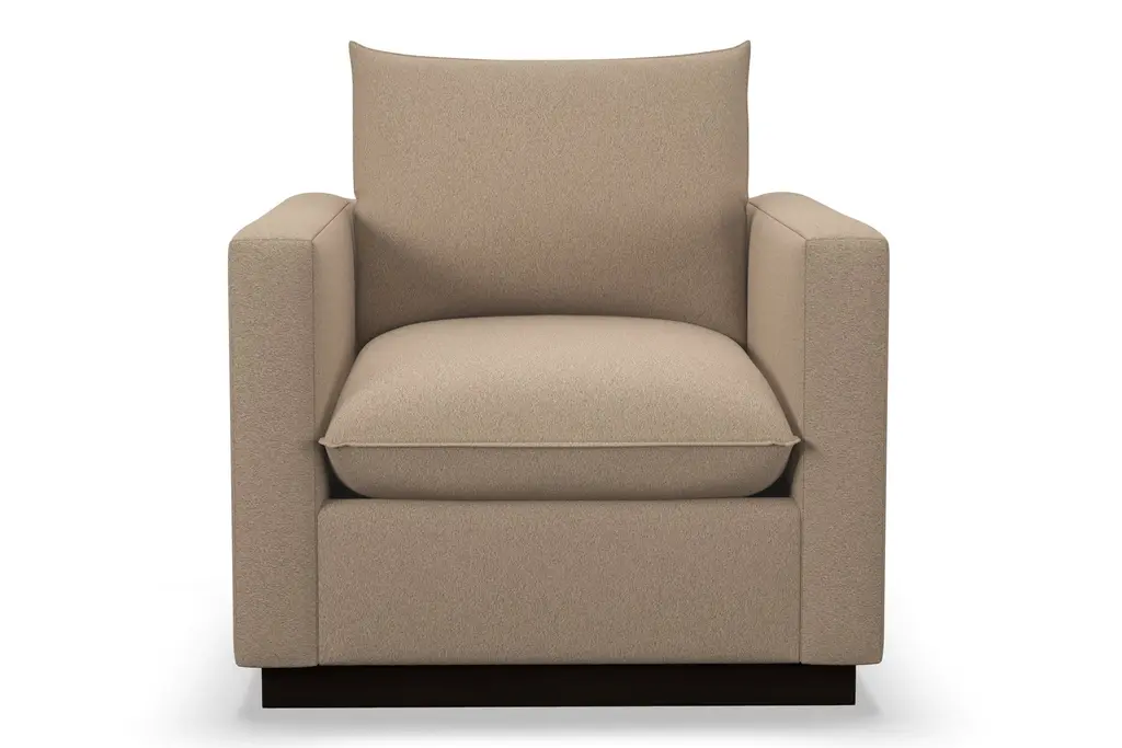 This is it. The Olivia Chair is the contemporary look we've all been waiting for. It takes the best aspects of previous chair generations and adds just enough contemporary flair to make it feel fresh, modern, and unique. The first thing you'll notice about the Olivia is its knife-edge cushion covers. The sharp lines created by the pinched, knife-edge detailing gives the Olivia its signature visual profile. Squared off arms, deep seating, and a solid wood base complete the package. If you've been waiting for the next era of sofa design then your wait ends now. The Olivia Chair is constructed in our downtown Los Angeles factory (Made in the USA!) and it is built with the utmost care and attention to quality. It features a solid, kiln-dried Alder wood frame, a sinuous spring system in the base, and soft-yet-supportive 2.0 high density foam cushions. All of these high quality components combine to create a sofa that will not only last for years to come, but it will also be comfortable the whole time.