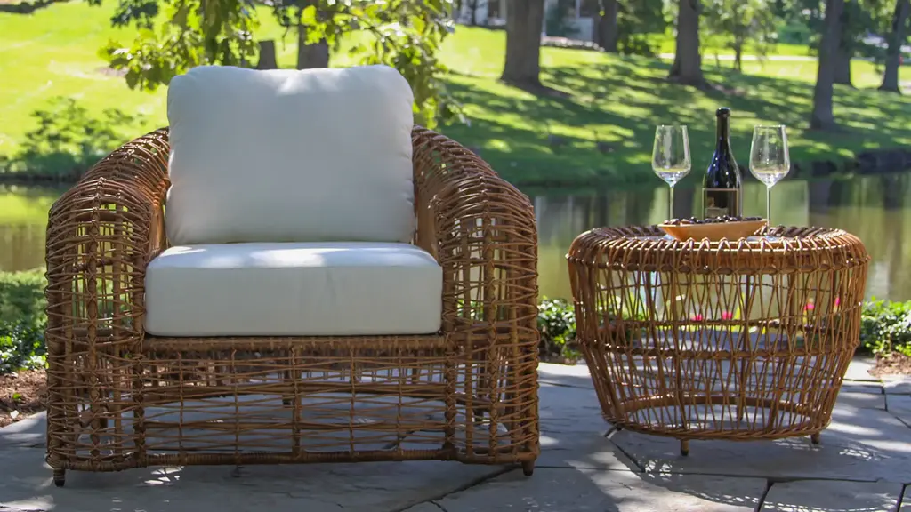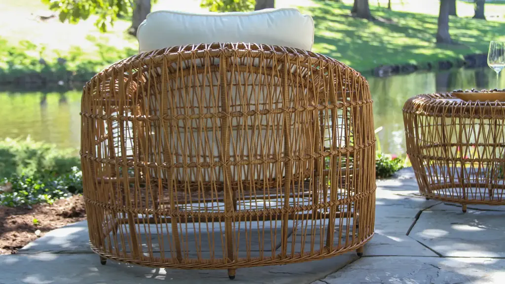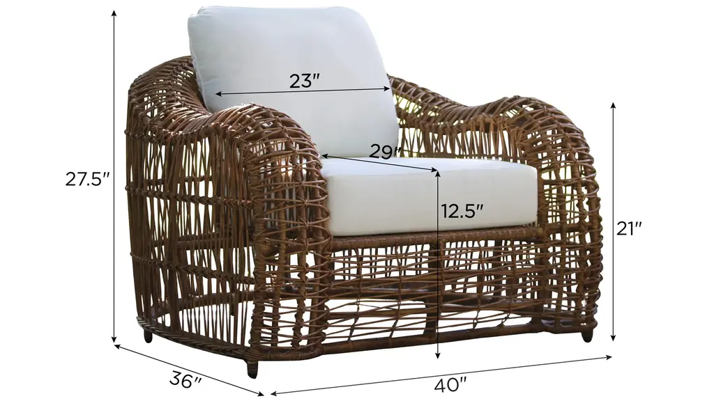 This On The Vine Outdoor Armchair - Set of 2 brings vineyard-inspired elegance to your outdoor space. Each chair features a handwoven, all-weather HDPE wicker in a warm butterscotch tone, wrapped around a sturdy, powder-coated aluminum frame for a breezy, relaxed feel. The open weave design adds texture and sophistication, while plush white Sunbrella cushions provide fade-resistant comfort. Filled with supportive foam and removable for easy cleaning, these cushions make lounging outdoors effortlessly stylish and low maintenance.