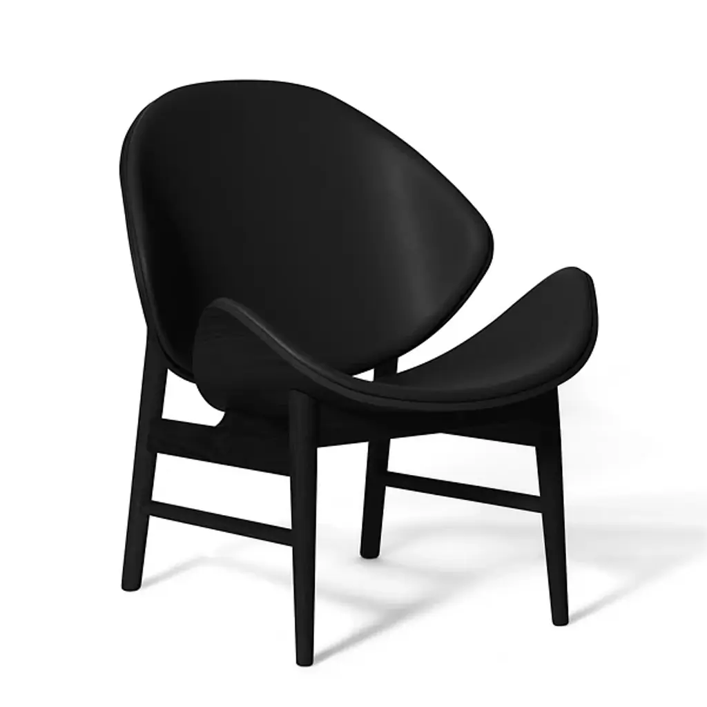 Bring a stately Scandi presence to interior living spaces with the Orange Lounge Chair from Warm Nordic. A comfortable seat that ascends from four angled legs that each narrow toward their bases, it was originally designed by Hans Olsen in 1955. The forward-looking design works effortlessly in modern or minimalist spaces, its scooping seats and backs padded with a slender, though soft layer of fill beneath comfortable upholstery. The seat is set back at a slight angle that is easy to rise from while offering optimal relaxation, encompassing without overpowering.