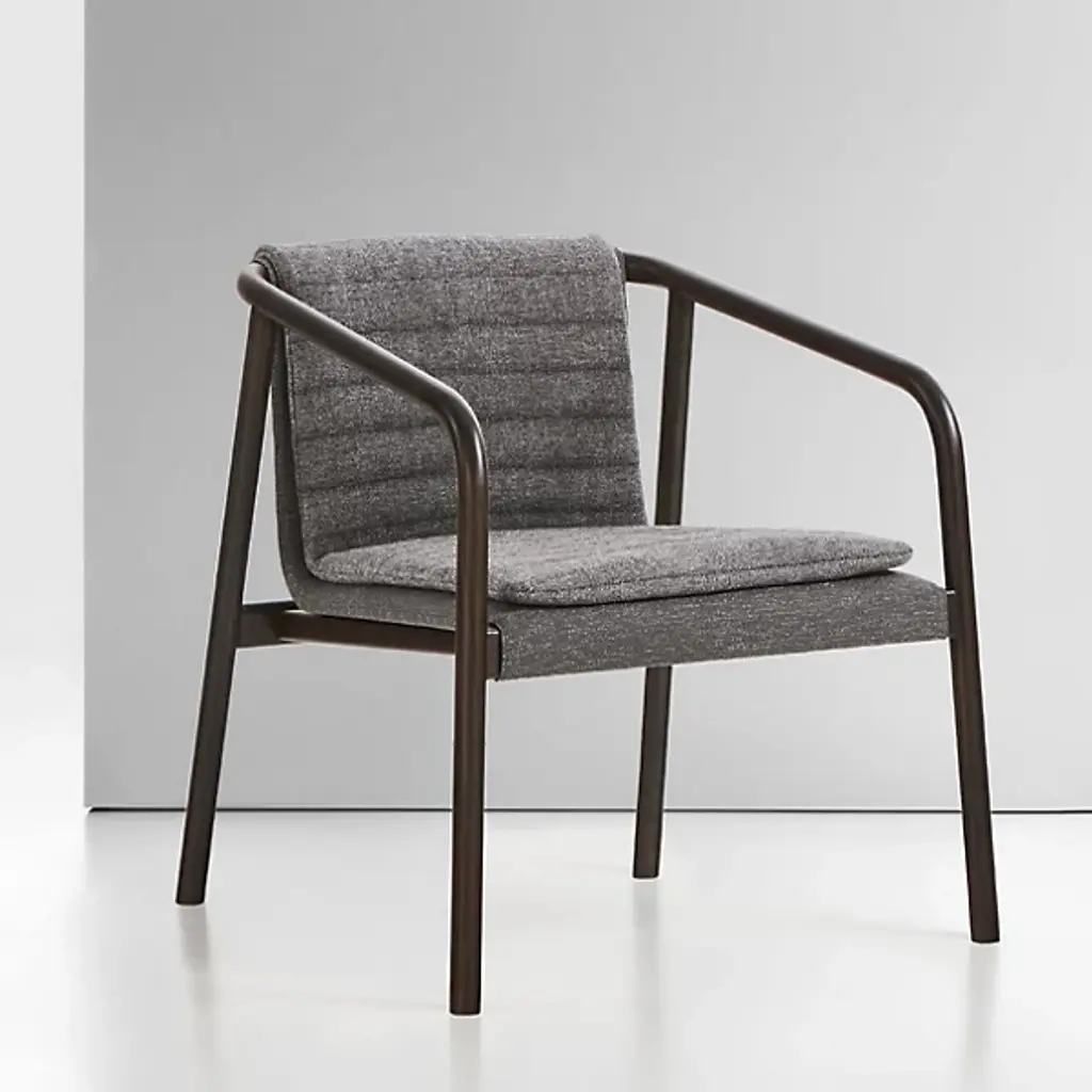 The Oslo Lounge Chair from Bernhardt Design treats upholstery as draped material within a skeletal framework, creating distinct visual layers that highlight both structural elements and comfort features. The solid walnut frame maintains its own geometric language while supporting fabric elements that rest gently within its boundaries. Angell Wyller Aarseth's layered approach allows each material to express its inherent qualities without compromise. The chair’s American walnut construction brings natural warmth to its linear framework, while the upholstered components provide necessary softness.