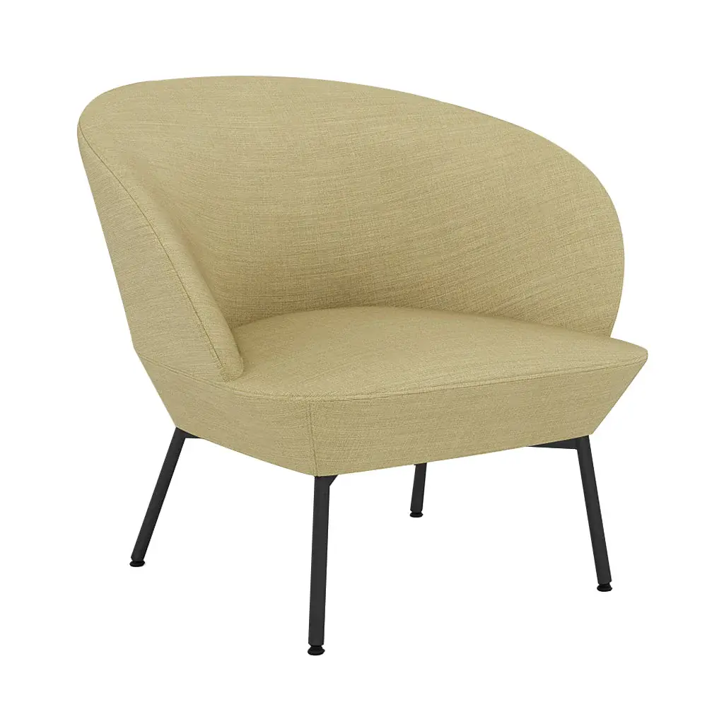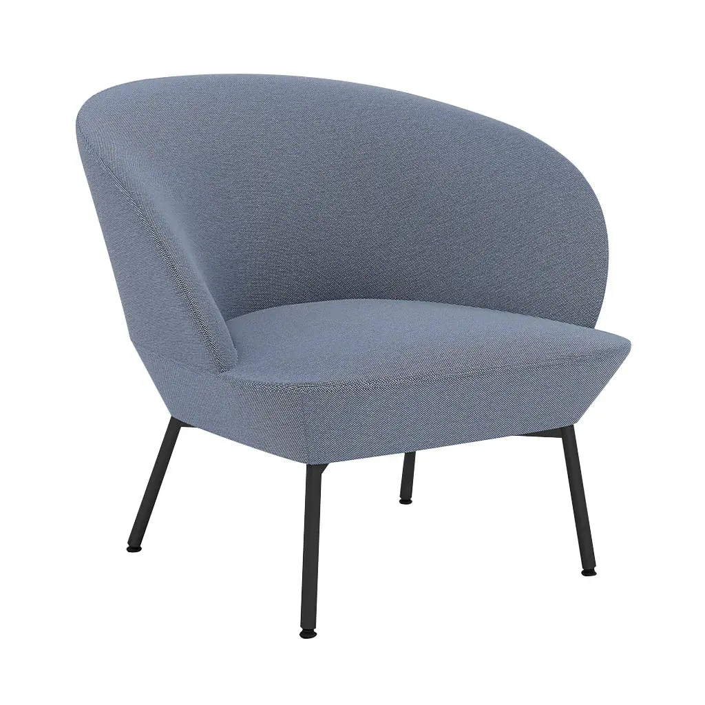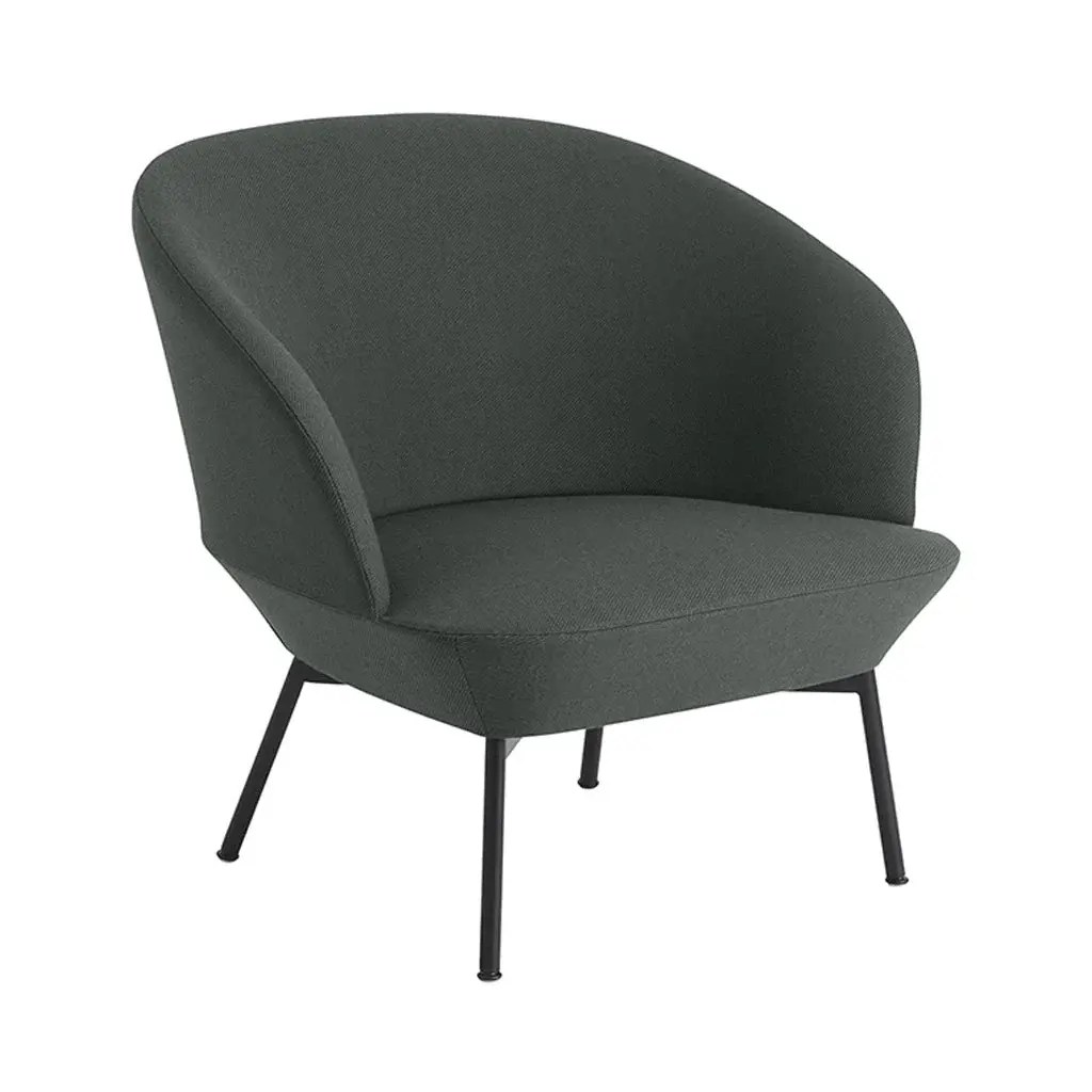 A slender tubing base gives the lounge chair from Muuto’s Oslo series a lightened presence with its slender contrast to the substantial molded seat.Marrying a compact profile with edifying comfort, the seating builds on the series’ signature geometric beveled seat cushion, creating a low and deep shell with an embracing back that envelopes and supports. The combination of sculptural qualities and a distinctly functional mien makes Norwegian design duo Anderssen & Voll’s piece ideal for both the home and public spaces alike.
