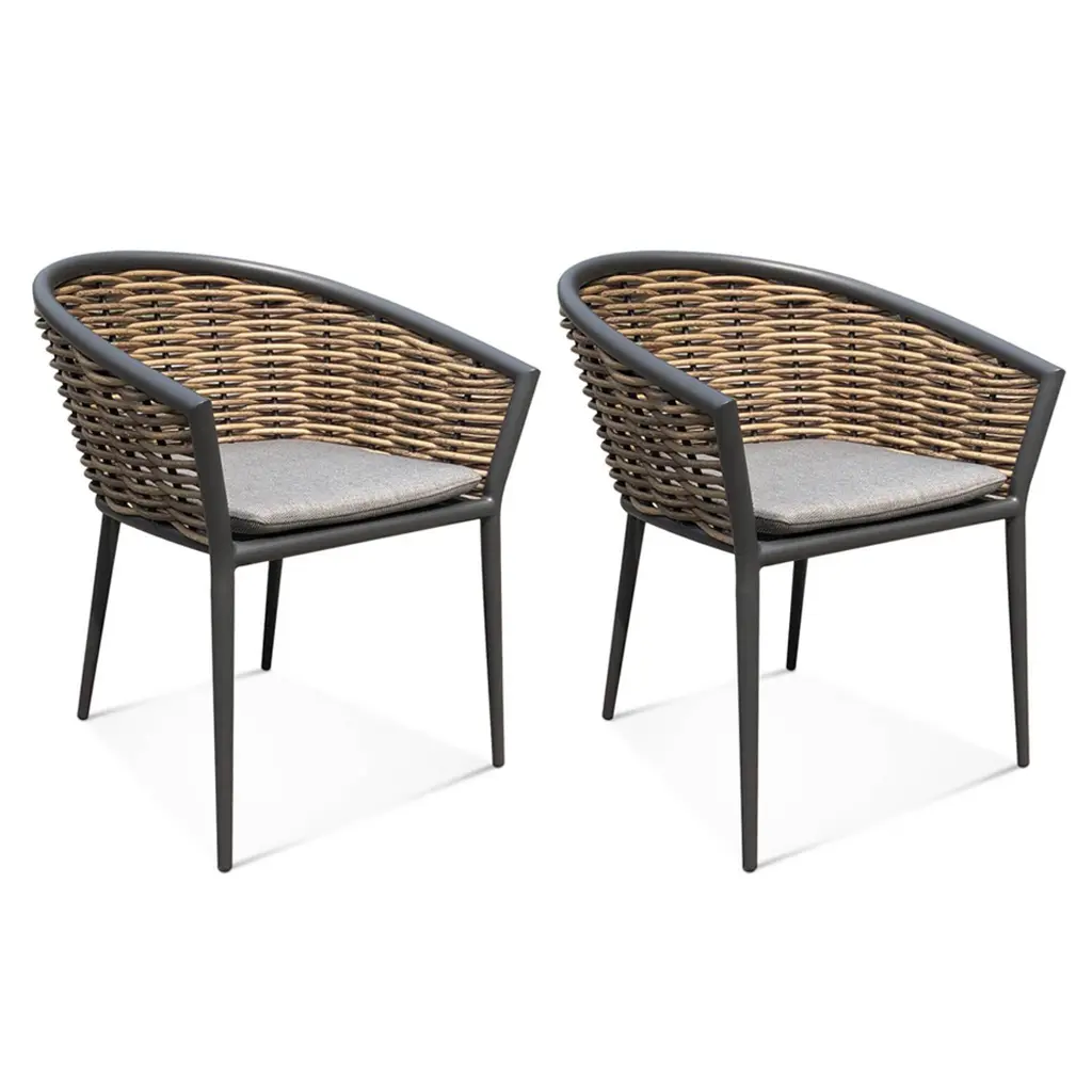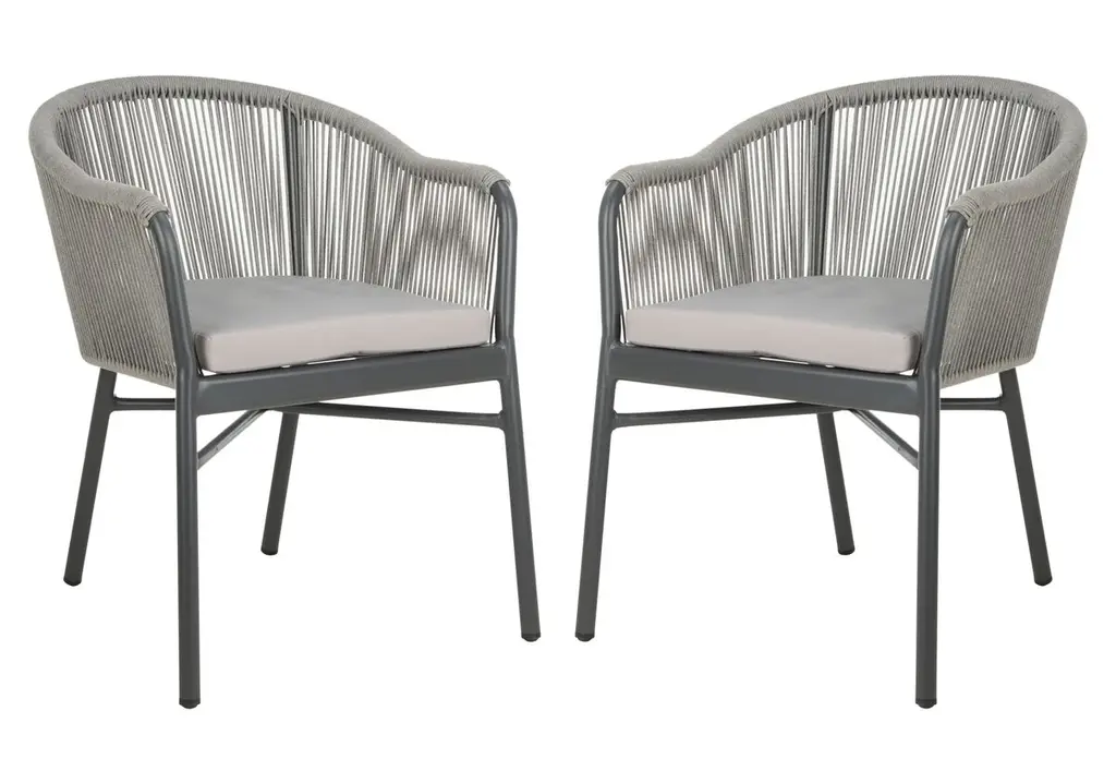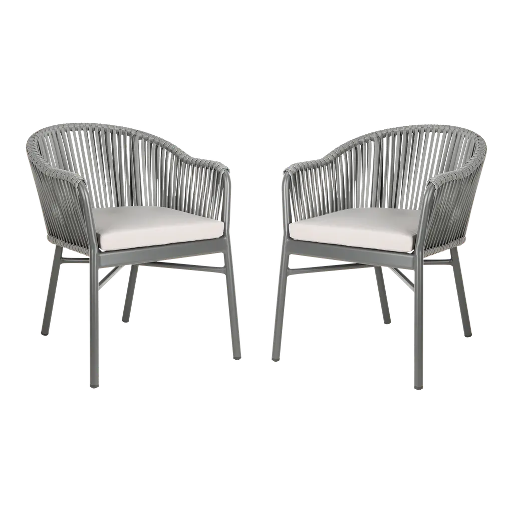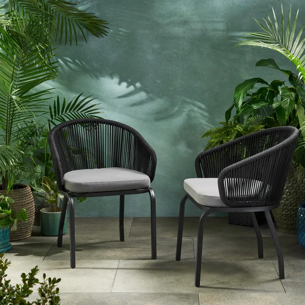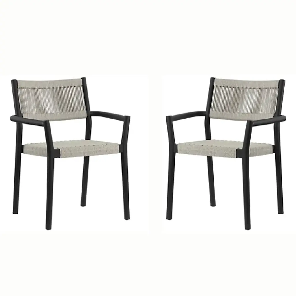 Outdoor Accent Chair With Rope Weave And Metal Frame, Set Of 2