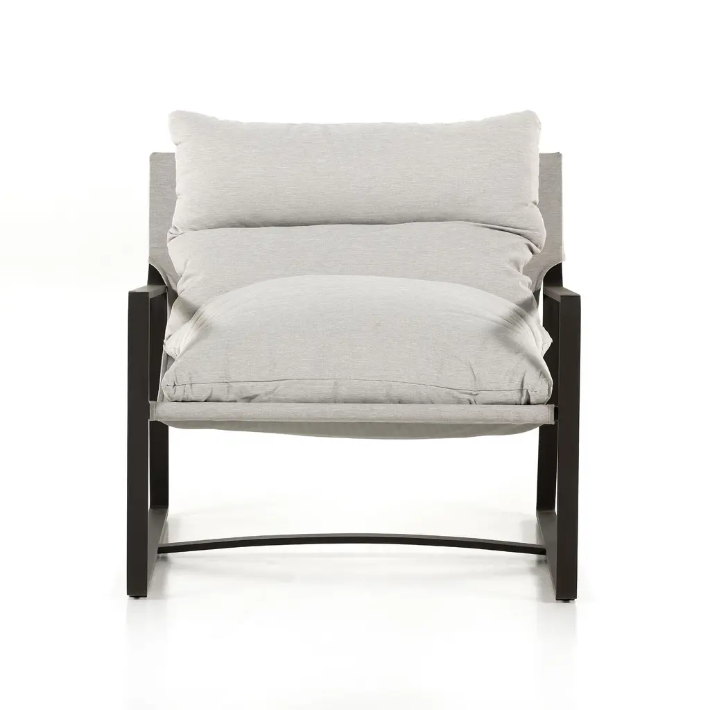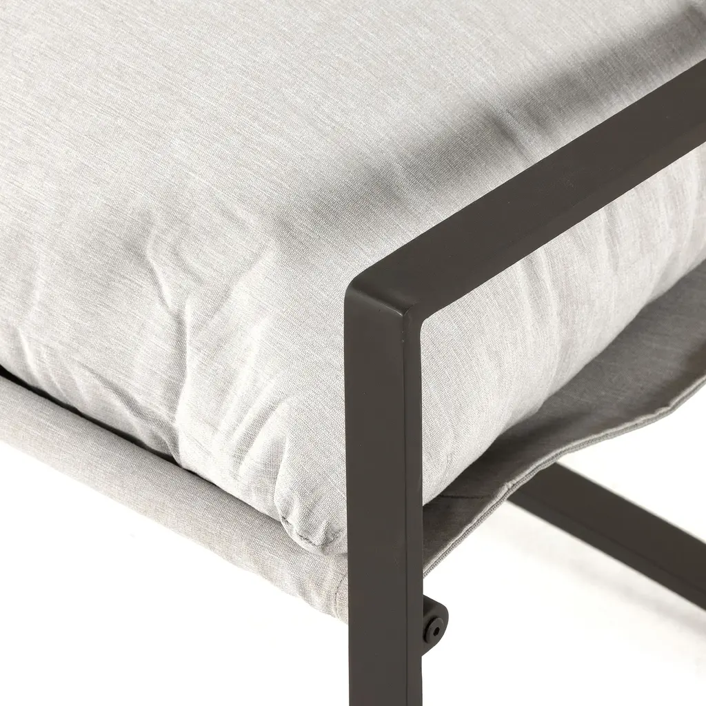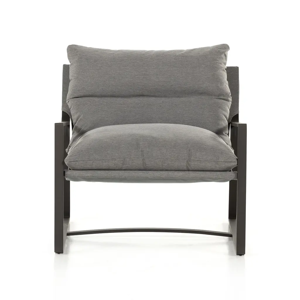 An elevated and modernized take on a classic design. It's framed by angular bronze iron arms. The seat sits low and curved for ultimate comfort. It's sure to enhance your outdoor space.