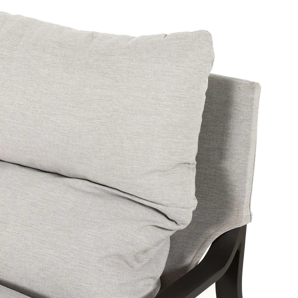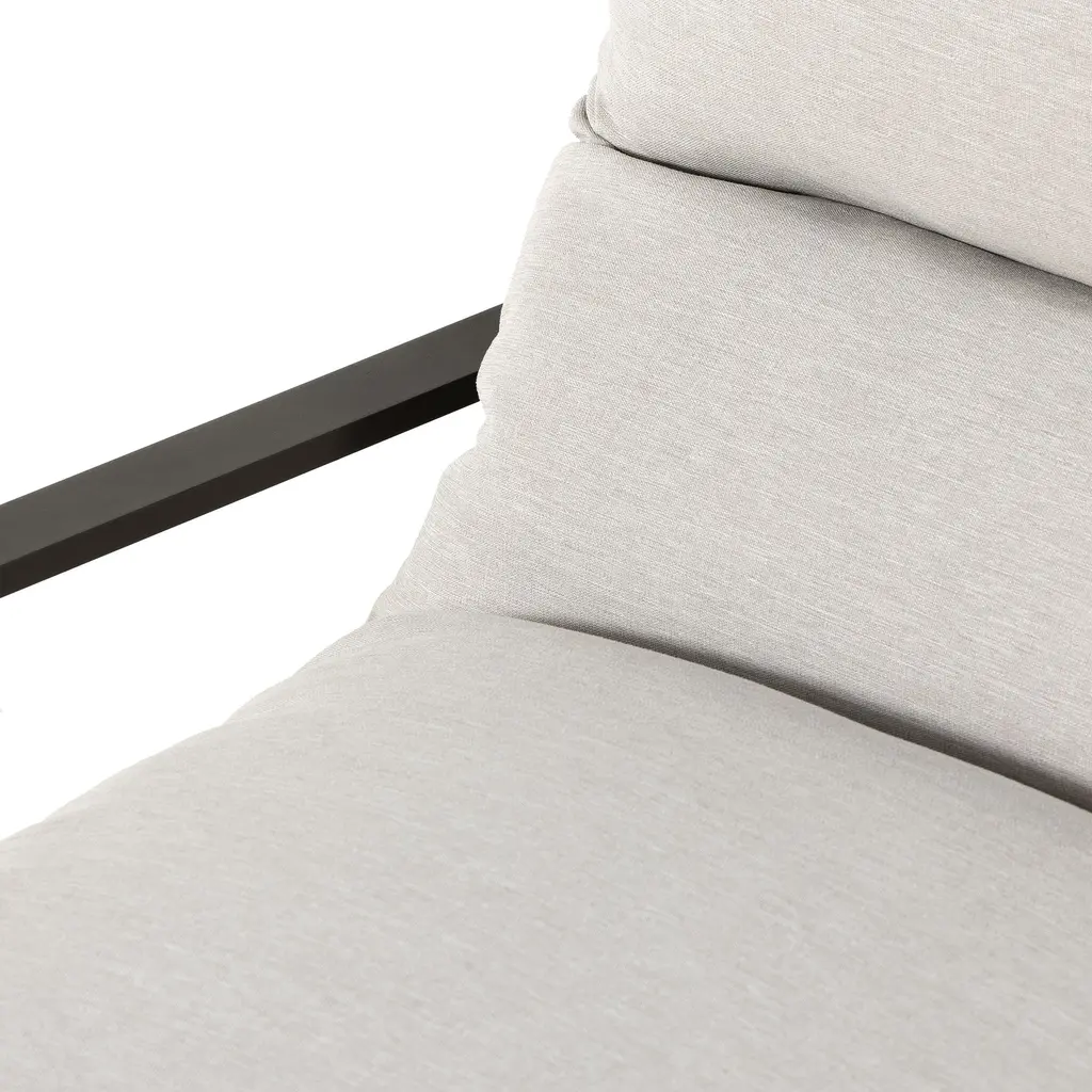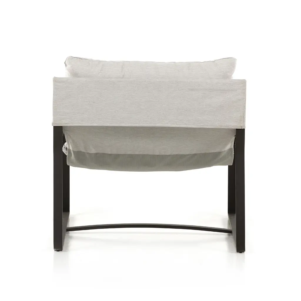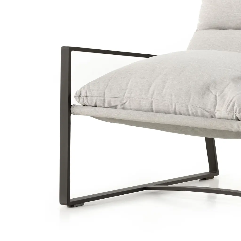 An elevated and modernized take on a classic design. It's framed by angular bronze iron arms. The seat sits low and curved for ultimate comfort. It's sure to enhance your outdoor space.